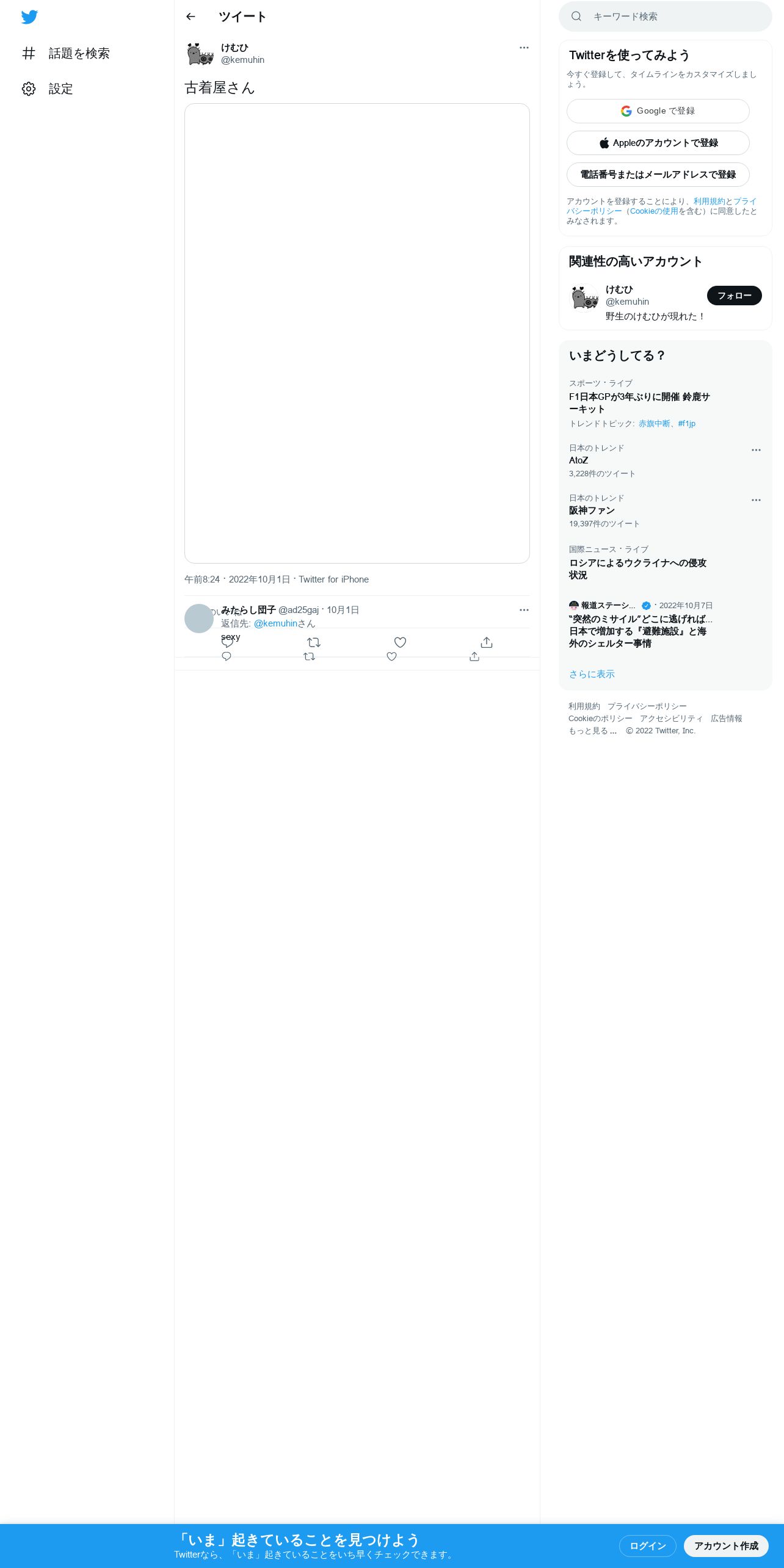 取得元URL: https://twitter.com:443/kemuhin/status/1576125895924133889
