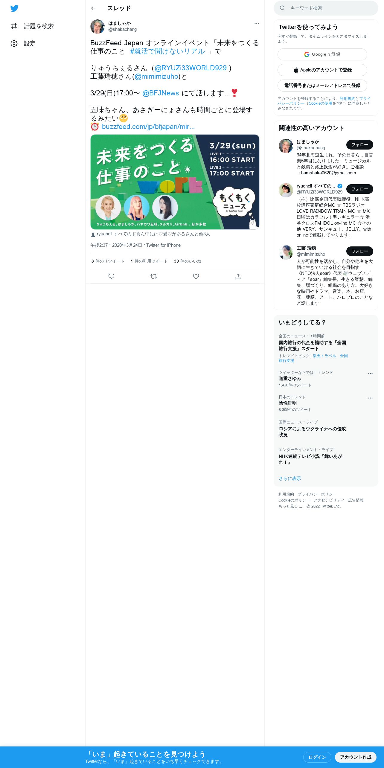 取得元URL: https://twitter.com:443/shakachang/status/1242460603471421440
