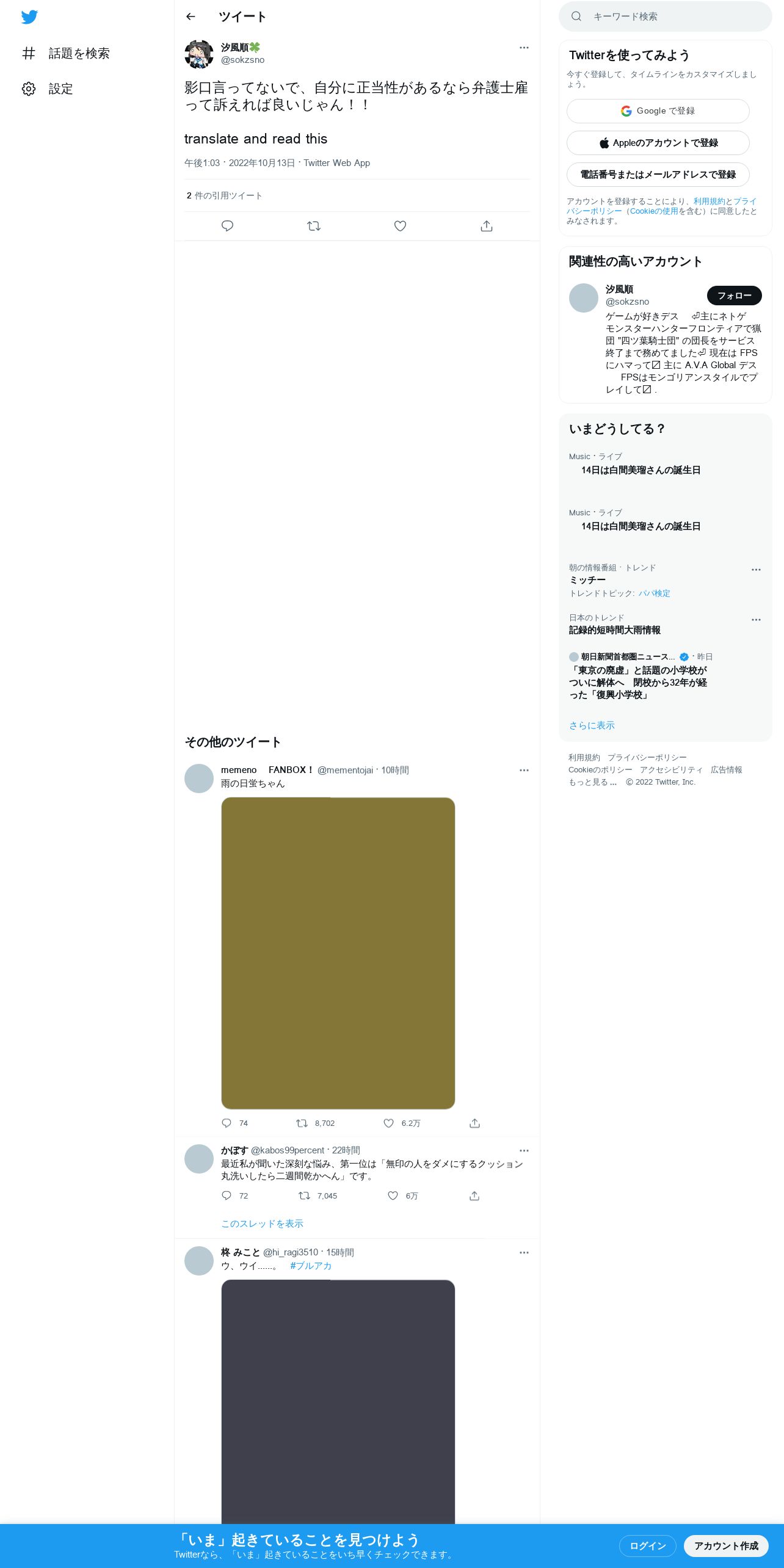 https://twitter.com:443/sokzsno/status/1580544674452078592?cxt=HHwWgIDQhbzAnO8rAAAA