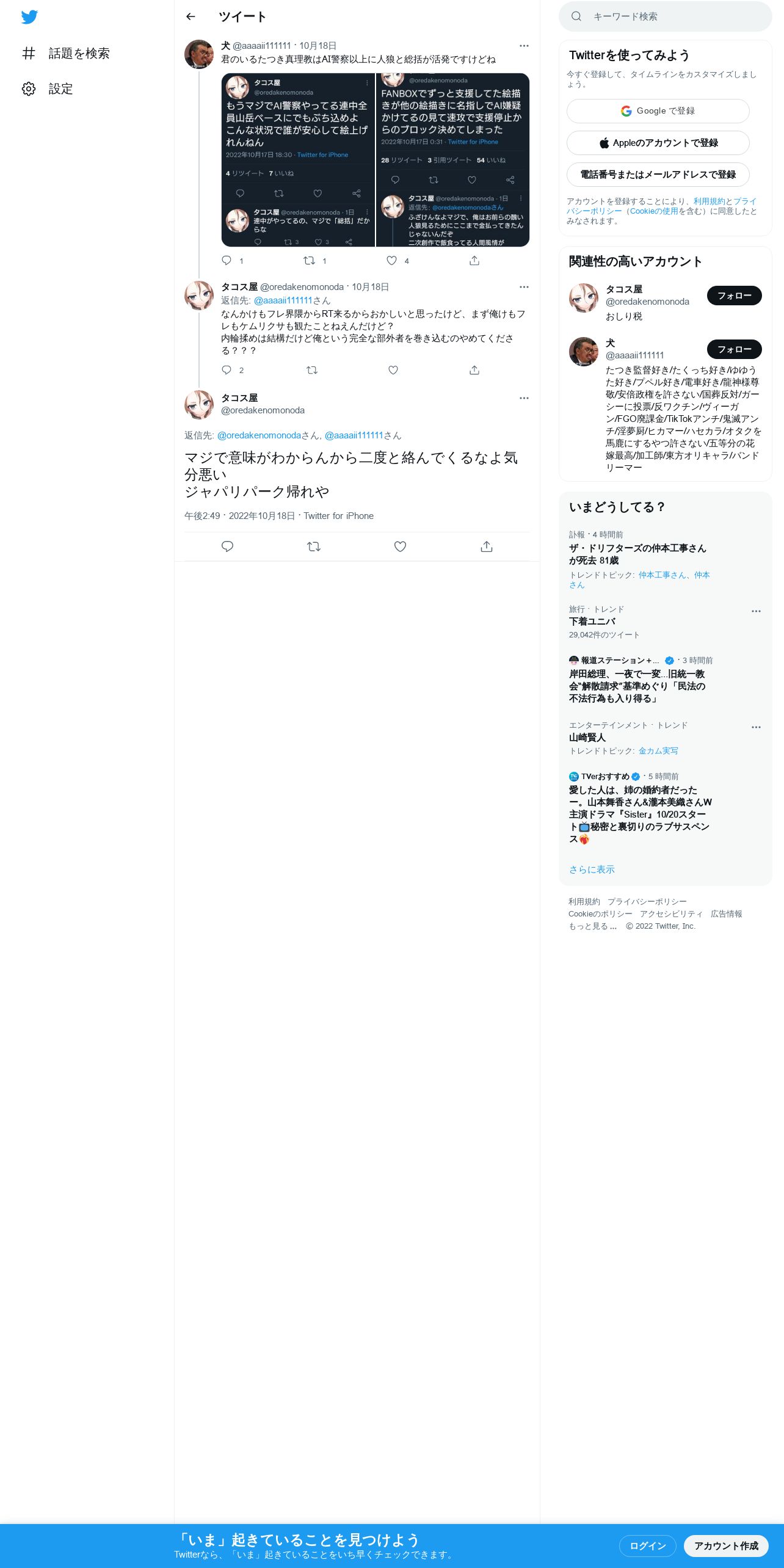 取得元URL: https://twitter.com:443/oredakenomonoda/status/1582383256405934080