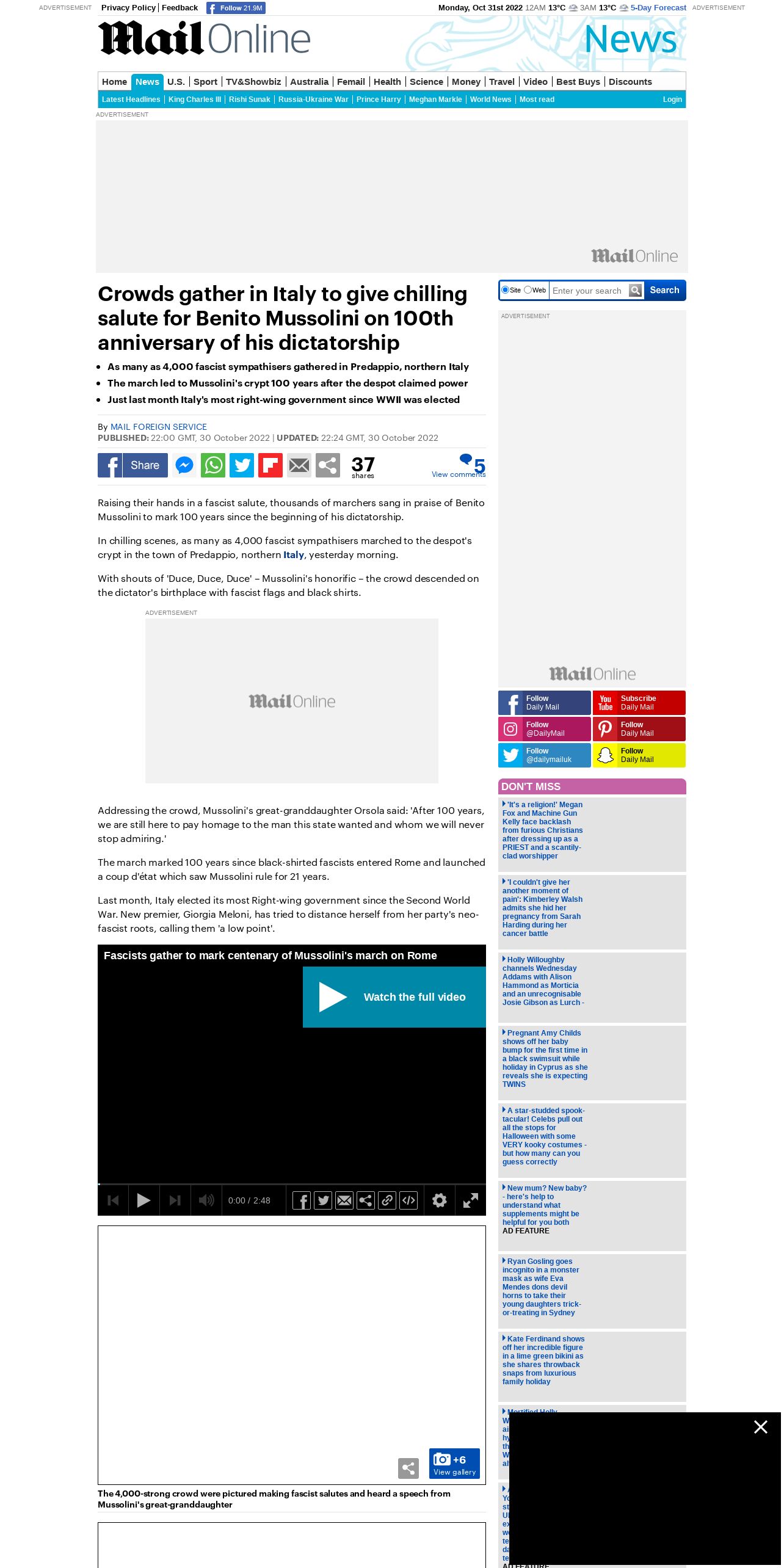 取得元URL: https://www.dailymail.co.uk:443/news/article-11371437/Crowds-Italy-chilling-salute-Benito-Mussolini-100th-anniversary-dictatorship.html