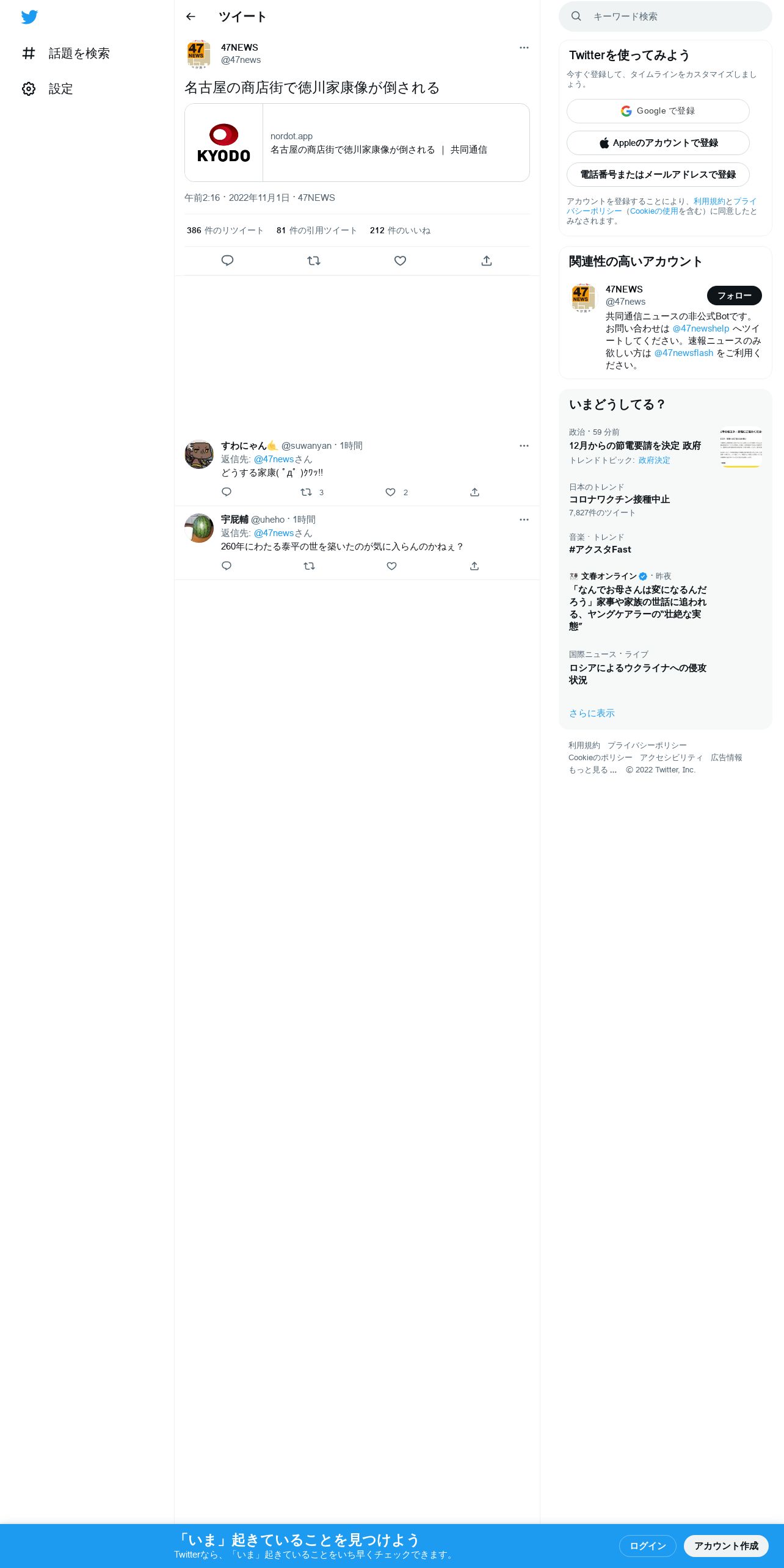 https://twitter.com:443/47news/status/1587267278009008128