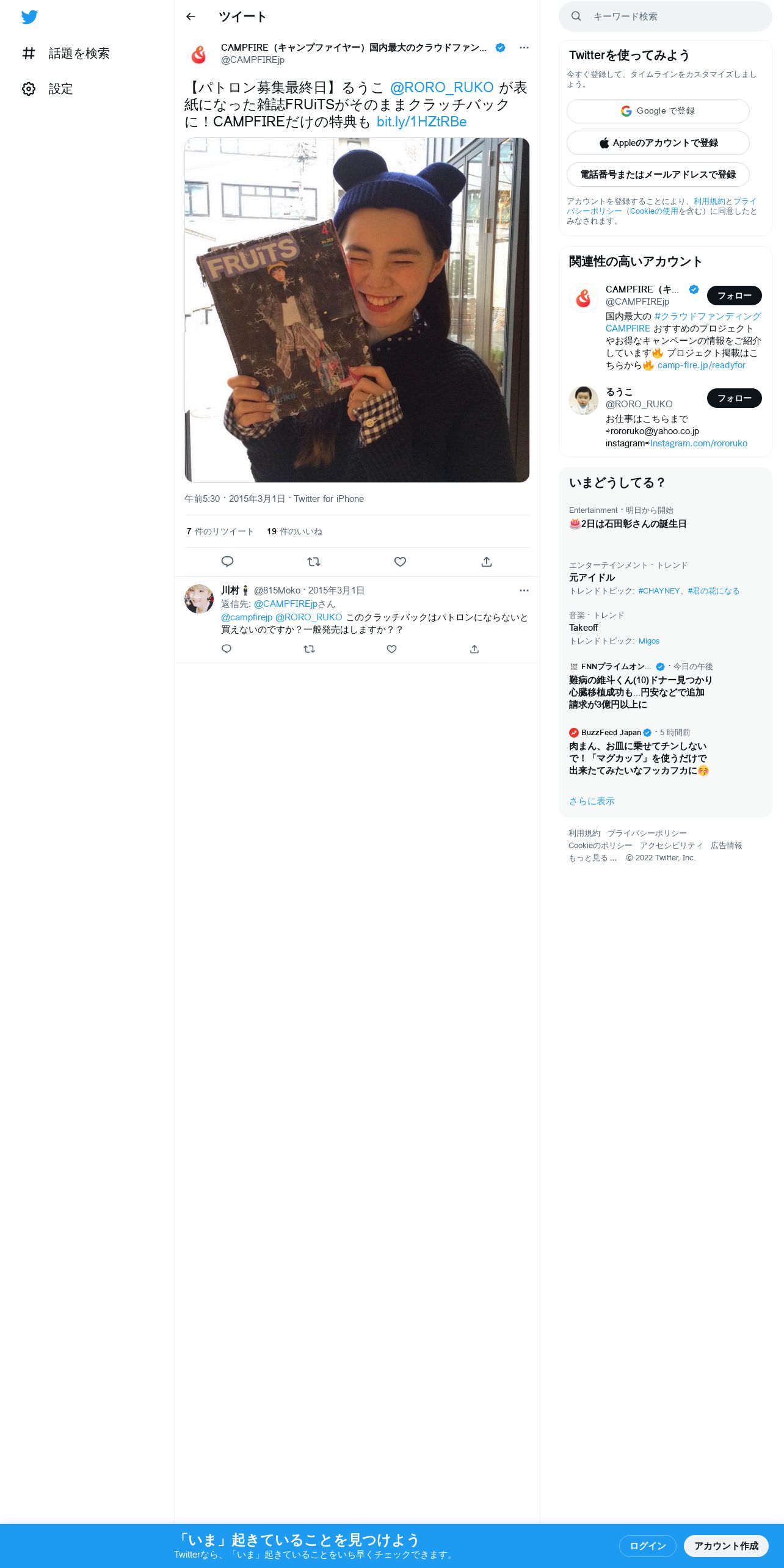 取得元URL: https://twitter.com:443/CAMPFIREjp/status/571905412112359424