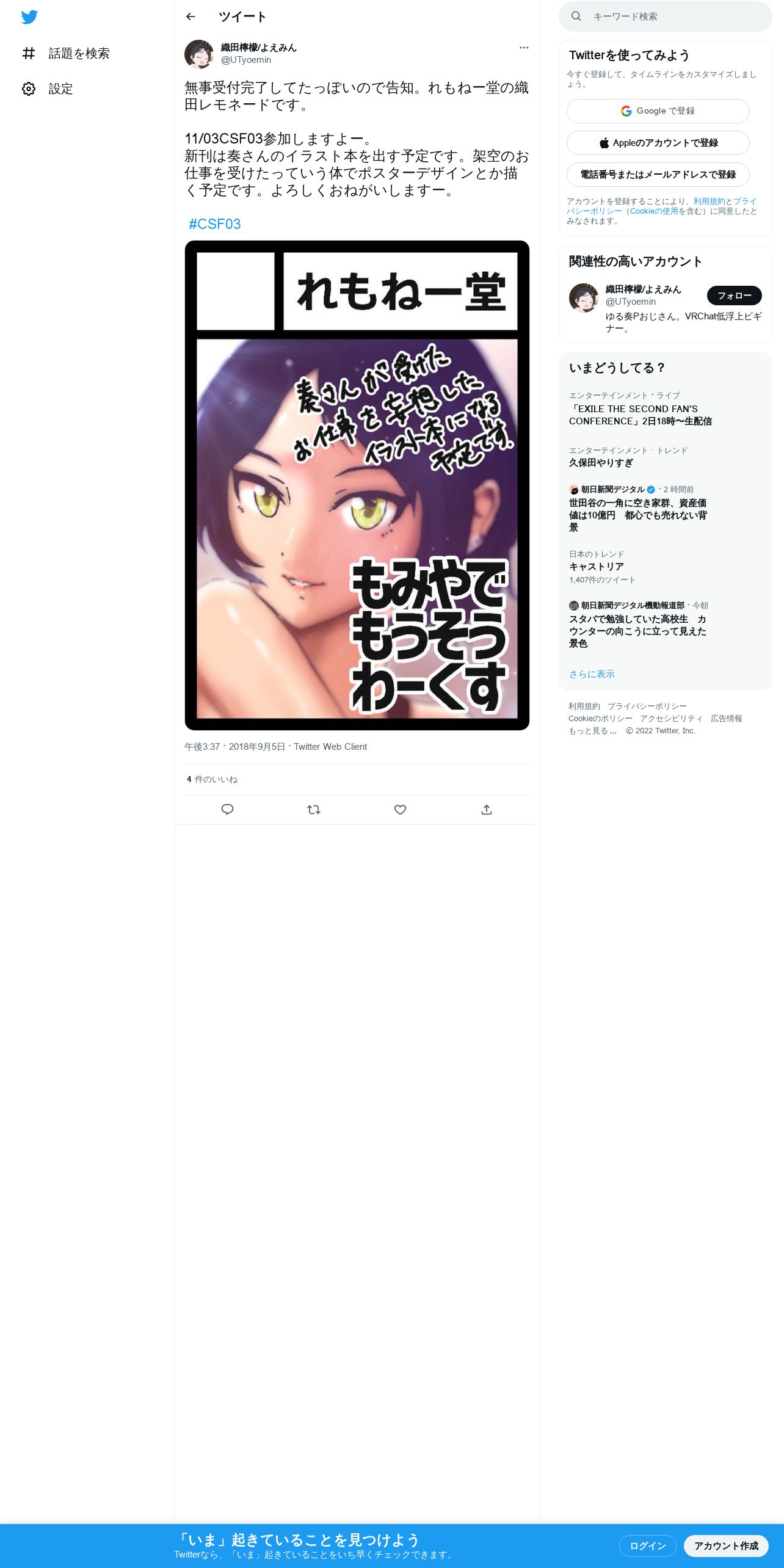 取得元URL: https://twitter.com:443/UTyoemin/status/1037364004757237760