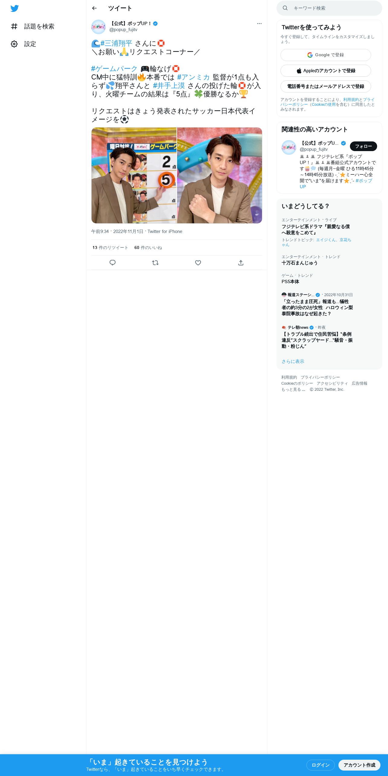 取得元URL: https://twitter.com:443/popup_fujitv/status/1587377462388097024