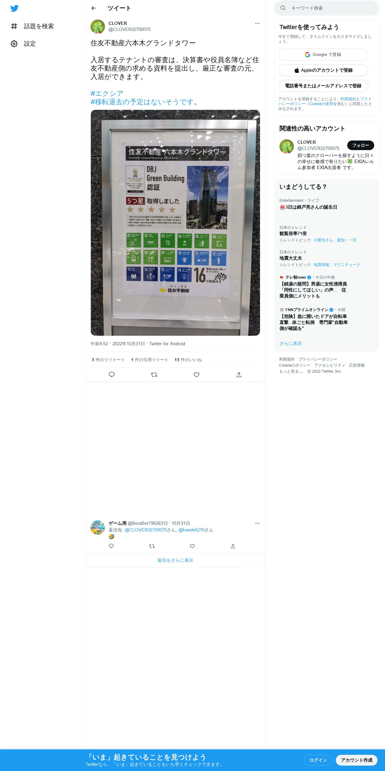 取得元URL: https://twitter.com:443/CLOVER32700075/status/1586944050329853952