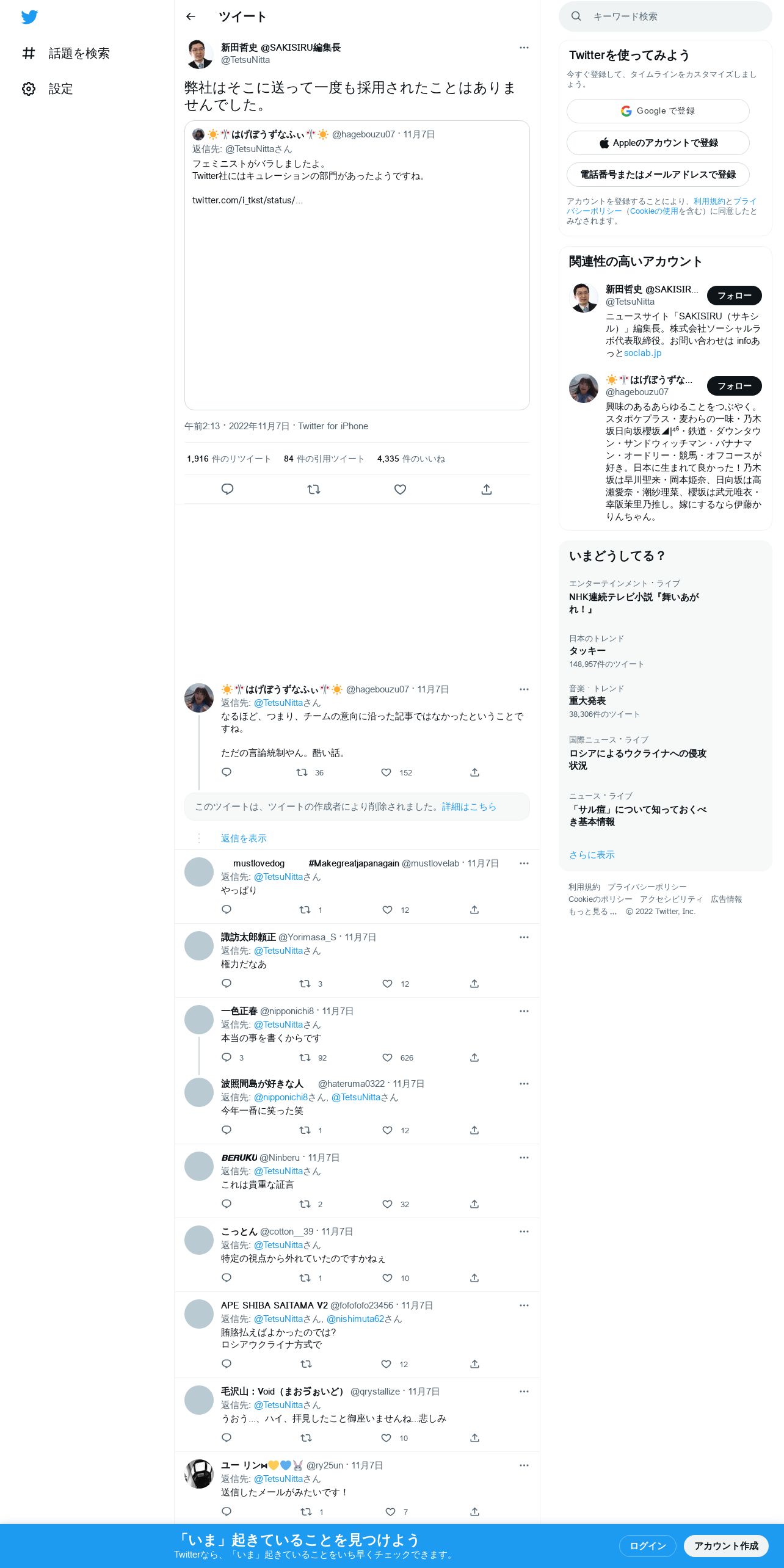 取得元URL: https://twitter.com:443/TetsuNitta/status/1589440995745497089