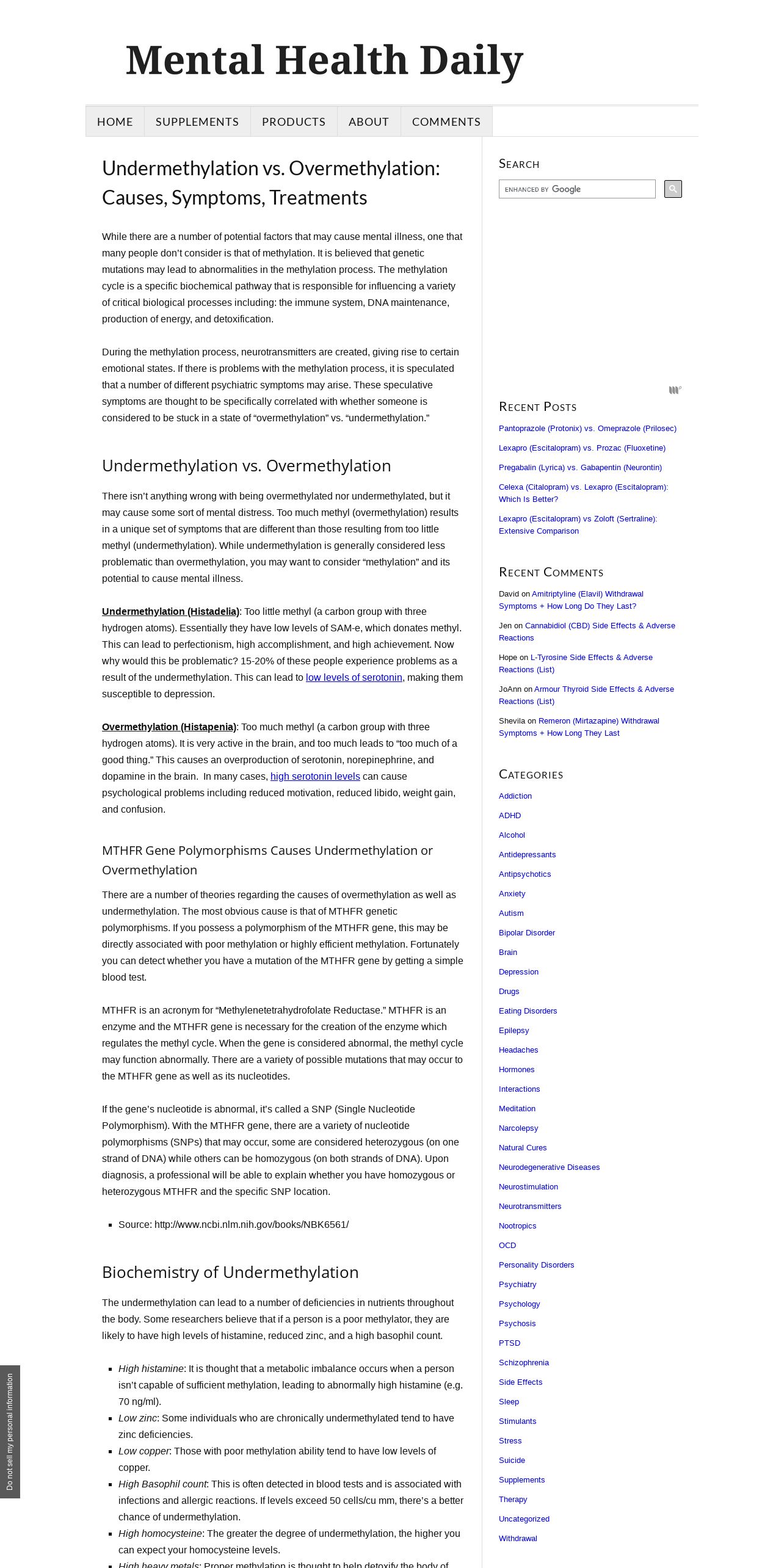 https://mentalhealthdaily.com:443/2015/03/21/undermethylation-vs-overmethylation-causes-symptoms-treatments/
