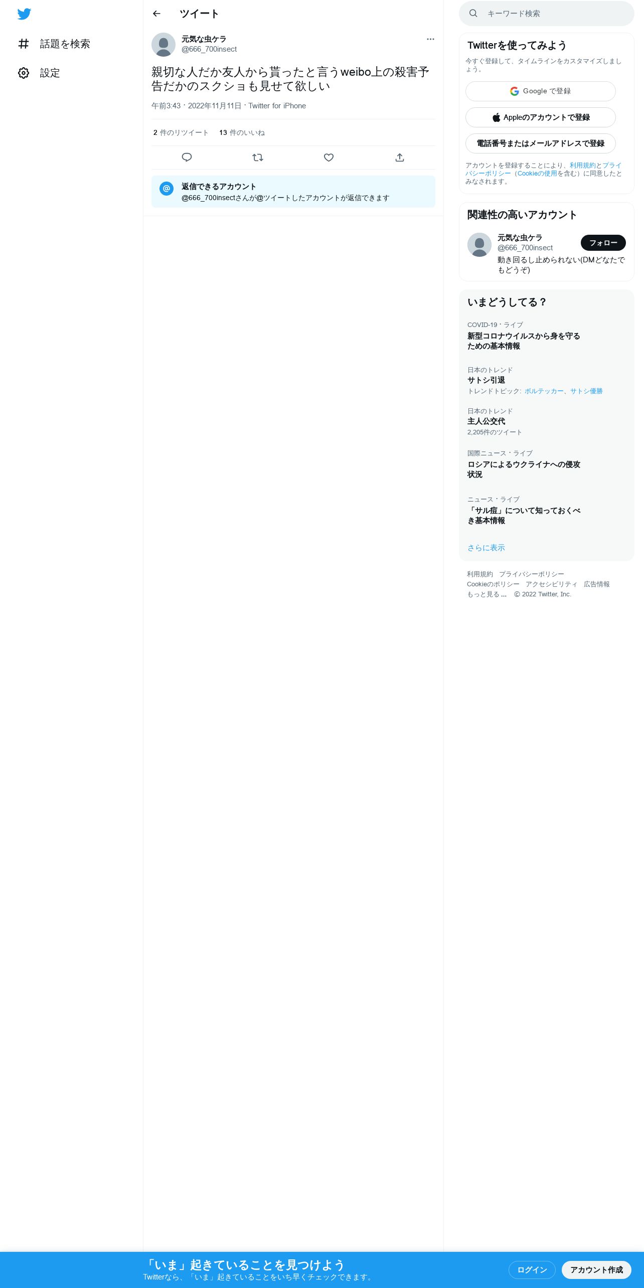 取得元URL: https://twitter.com:443/666_700insect/status/1590913013506543616