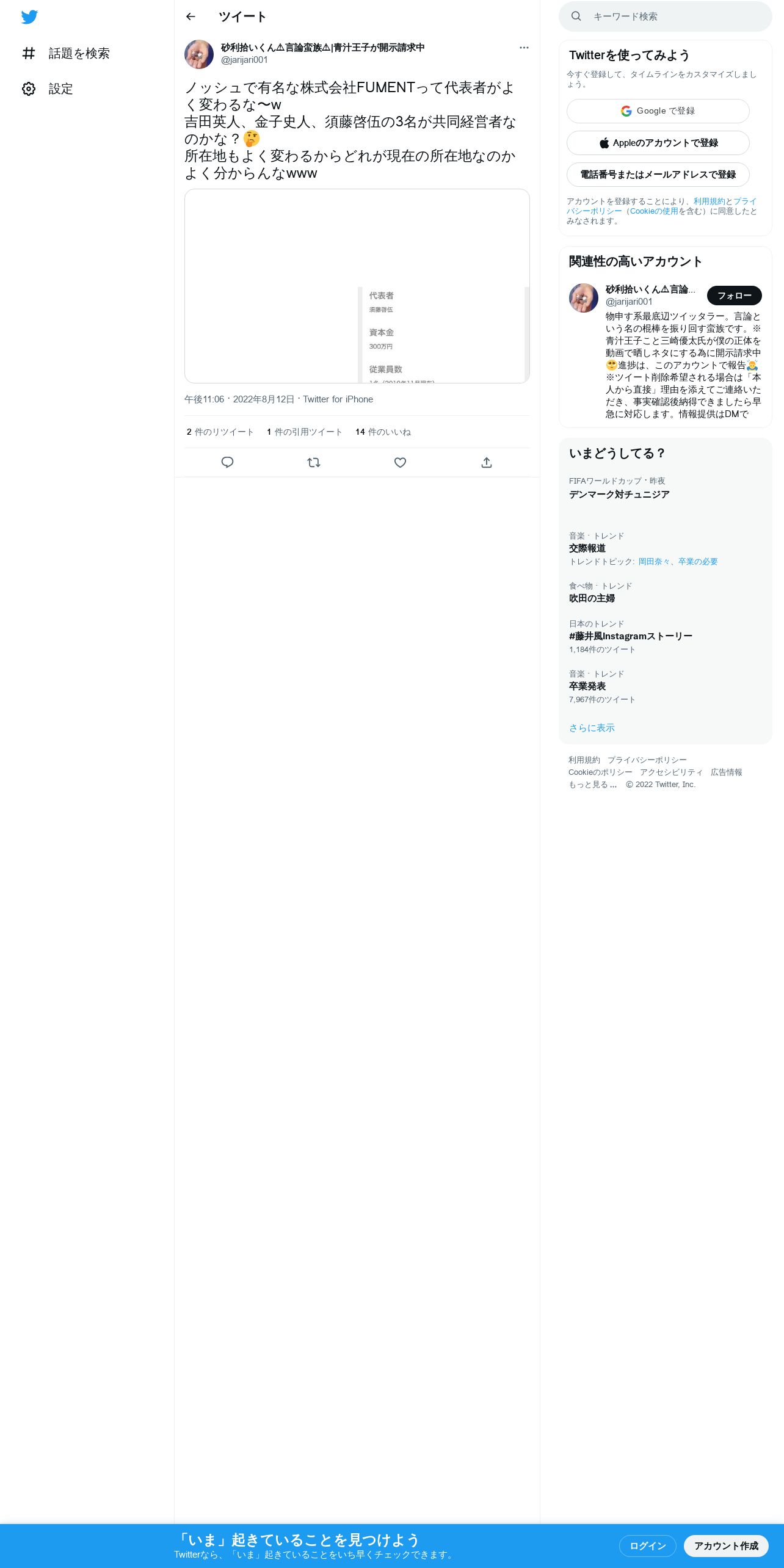 取得元URL: https://twitter.com:443/jarijari001/status/1558228445678936064