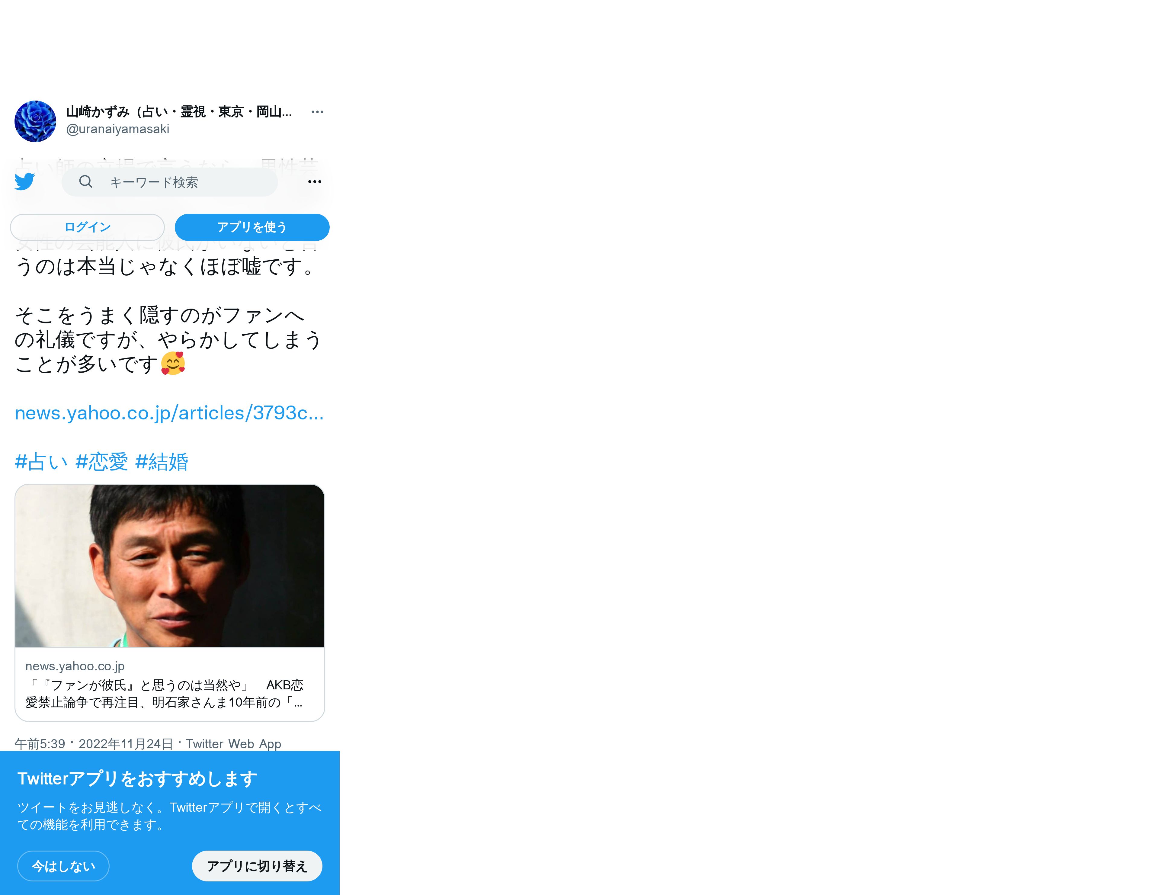 取得元URL: https://twitter.com:443/uranaiyamasaki/status/1595653186840322051