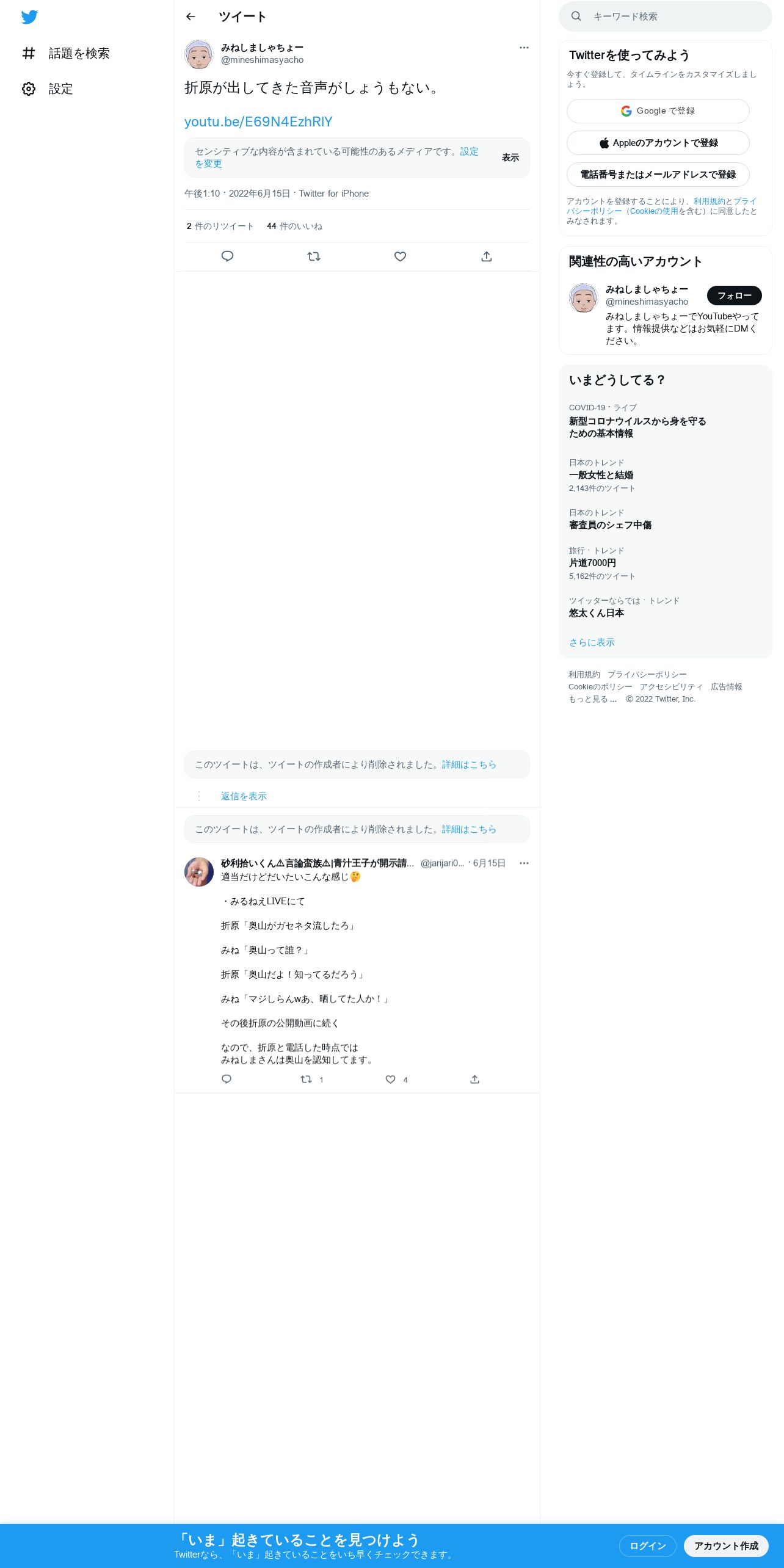 https://twitter.com:443/mineshimasyacho/status/1537059885606658051