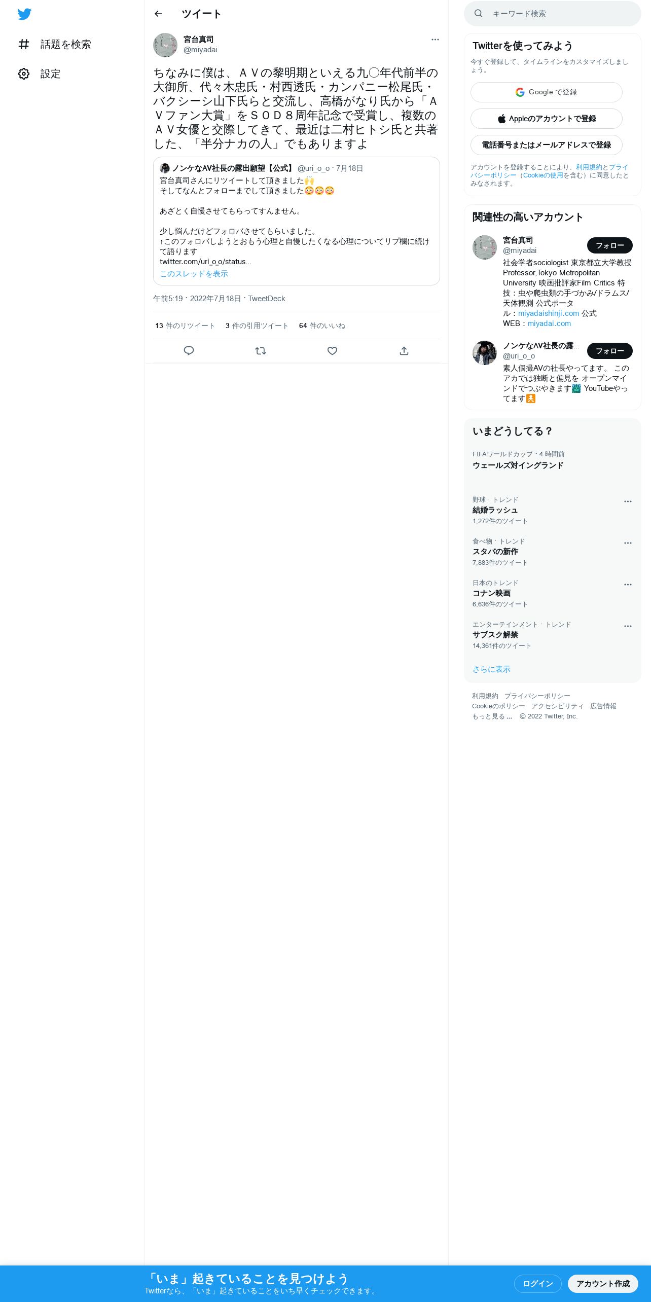 https://twitter.com:443/miyadai/status/1548900342410391552?t=IUR82XROaVPmPYdI8O-c6A&s=19