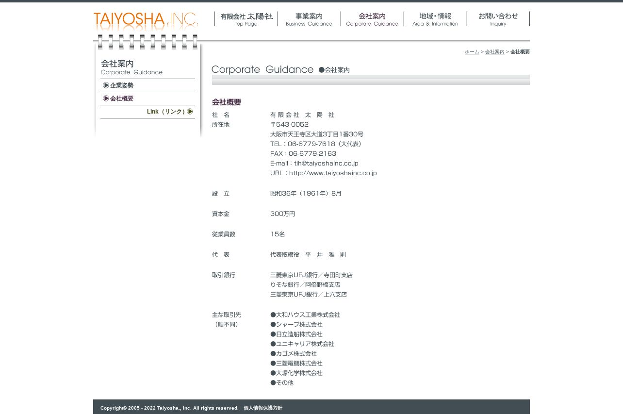 https://www.taiyoshainc.co.jp:443/corporate/outline/