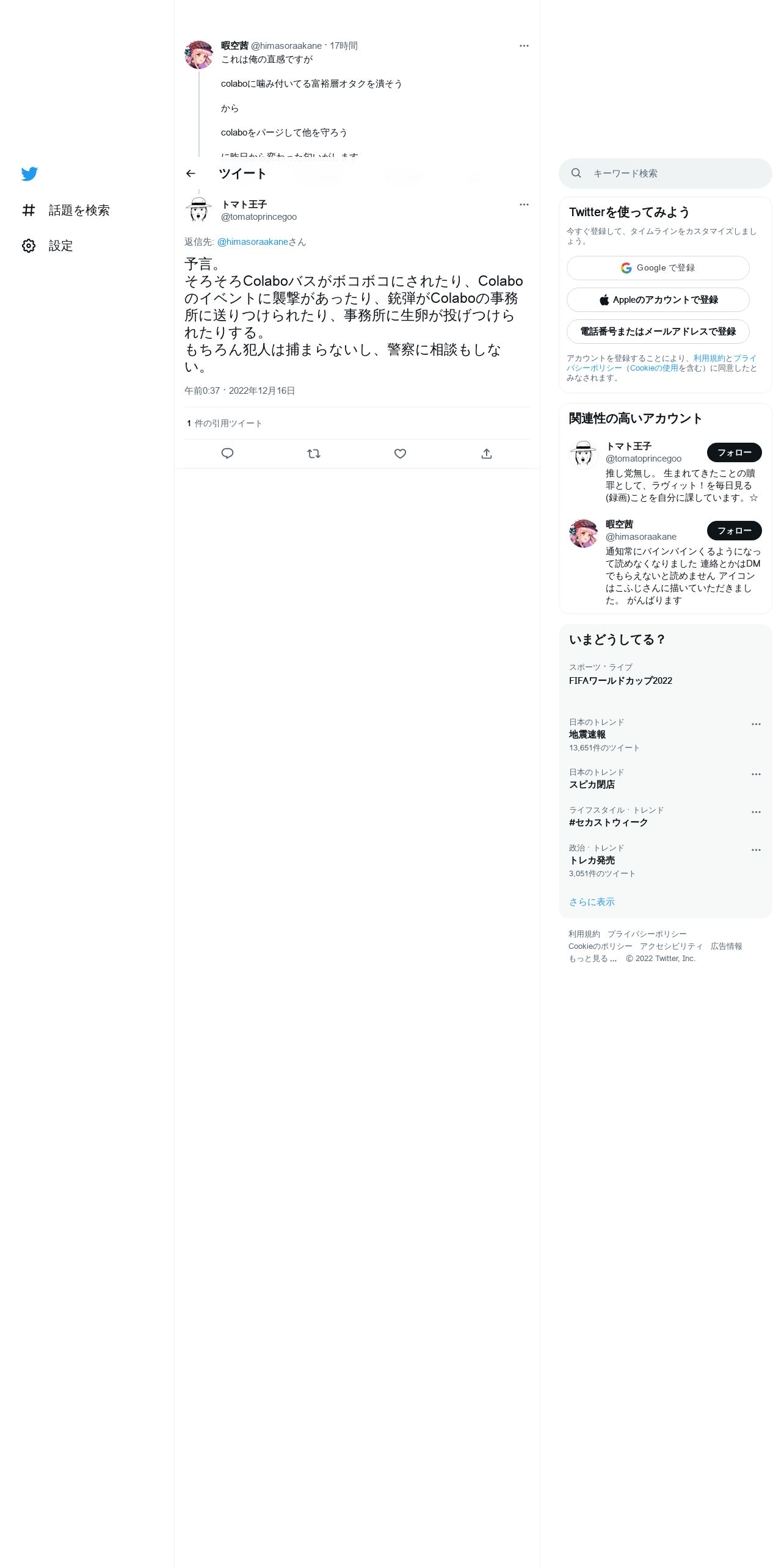 取得元URL: https://twitter.com:443/tomatoprincegoo/status/1603549949182246912?t=Anvj92TPusXrEFGENO18qw&s=19