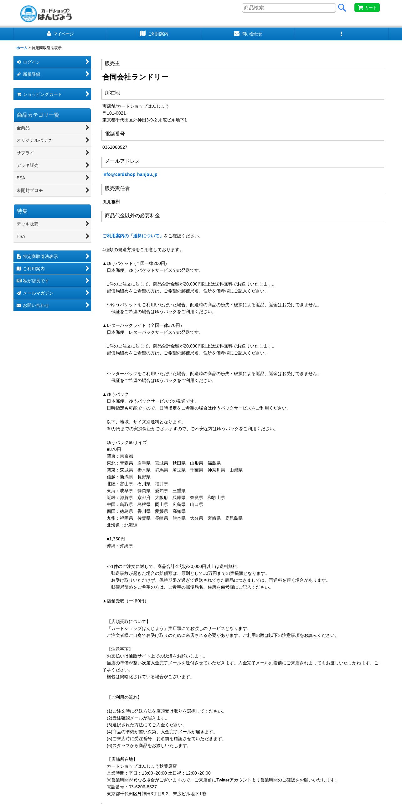 取得元URL: https://hanjo-cardshop.ocnk.net:443/info