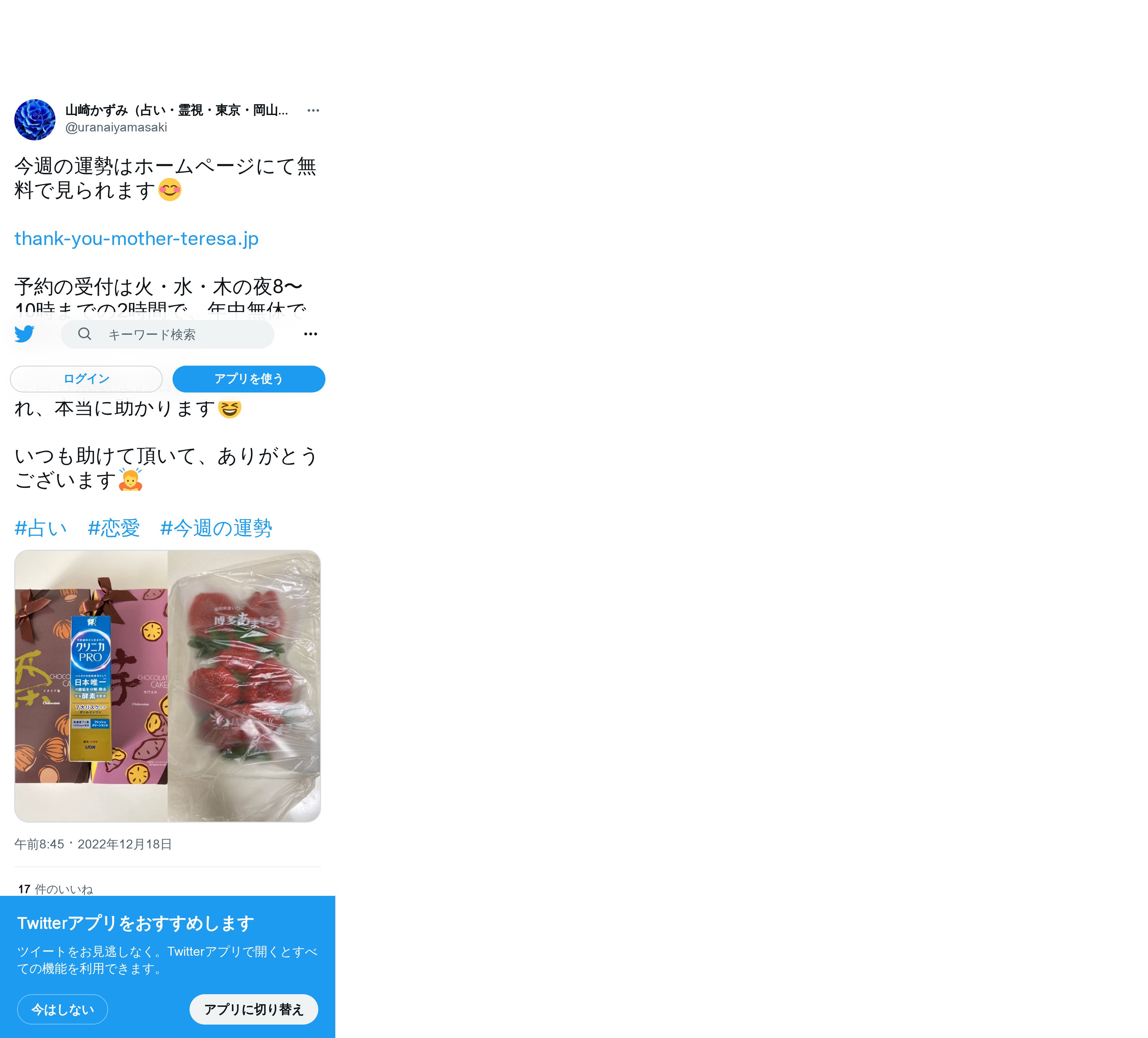 取得元URL: https://twitter.com:443/uranaiyamasaki/status/1604397464231952384