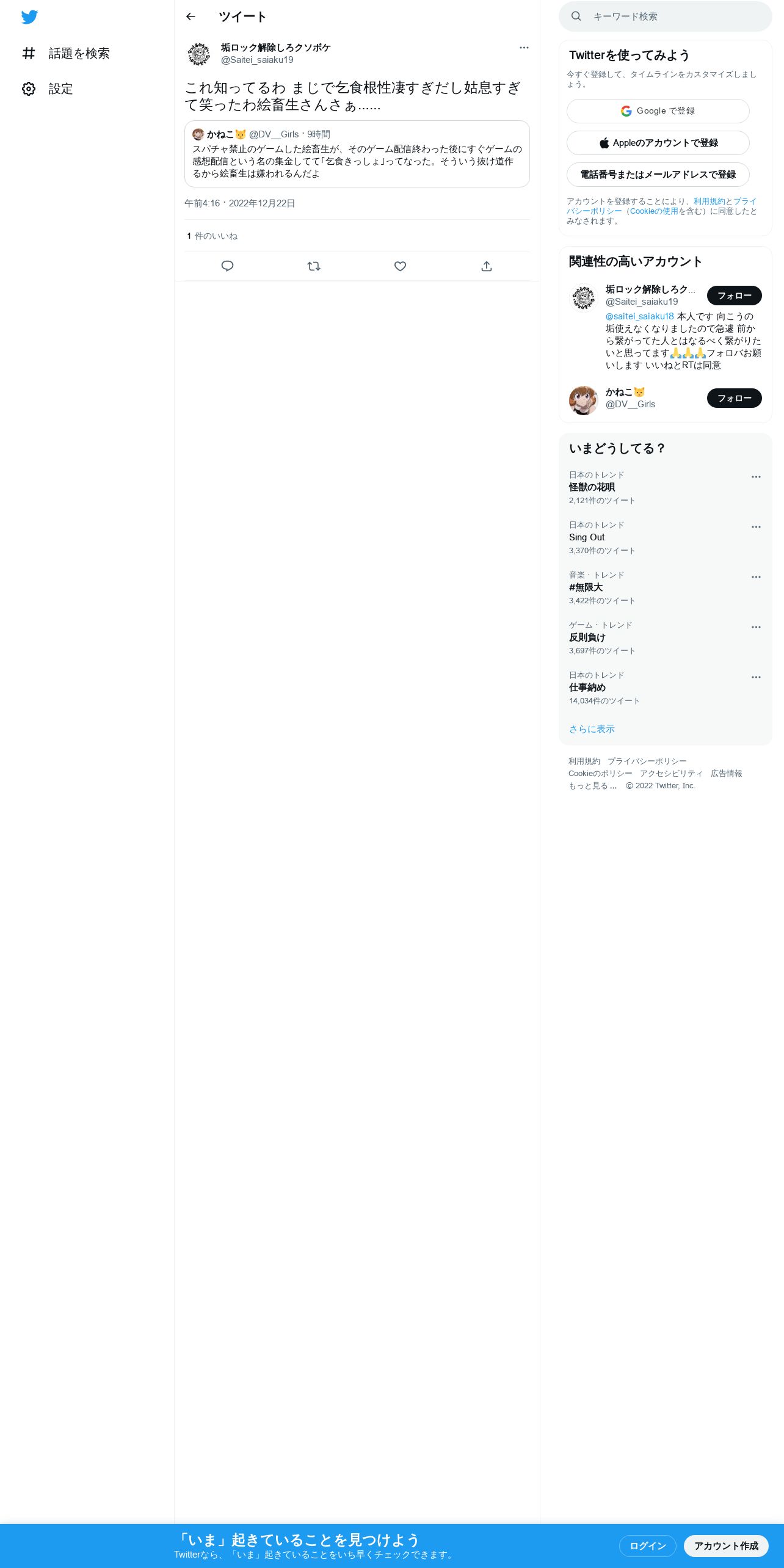 取得元URL: https://twitter.com:443/Saitei_saiaku19/status/1605779375336497153