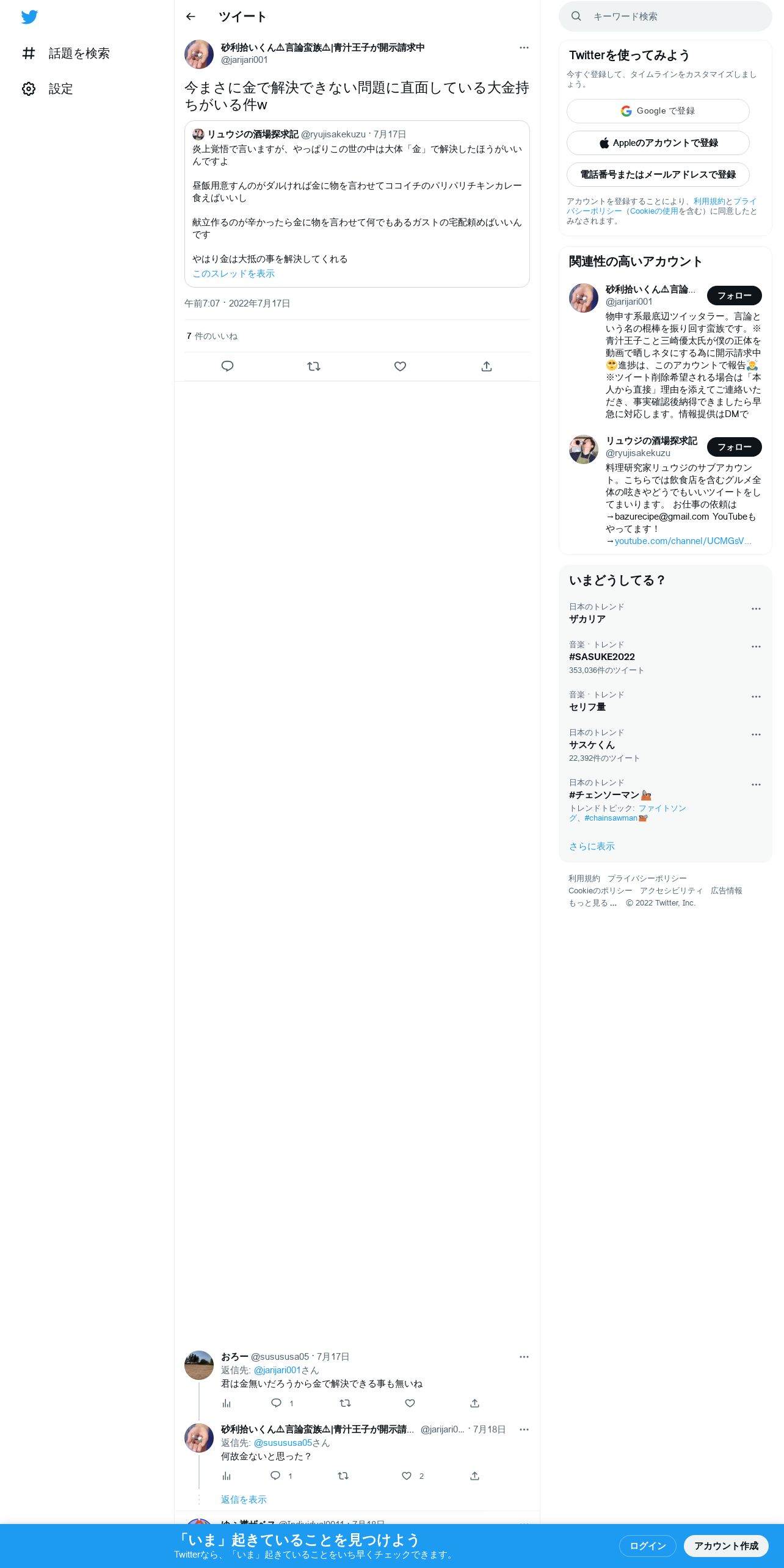 取得元URL: https://twitter.com:443/jarijari001/status/1548565078378967040