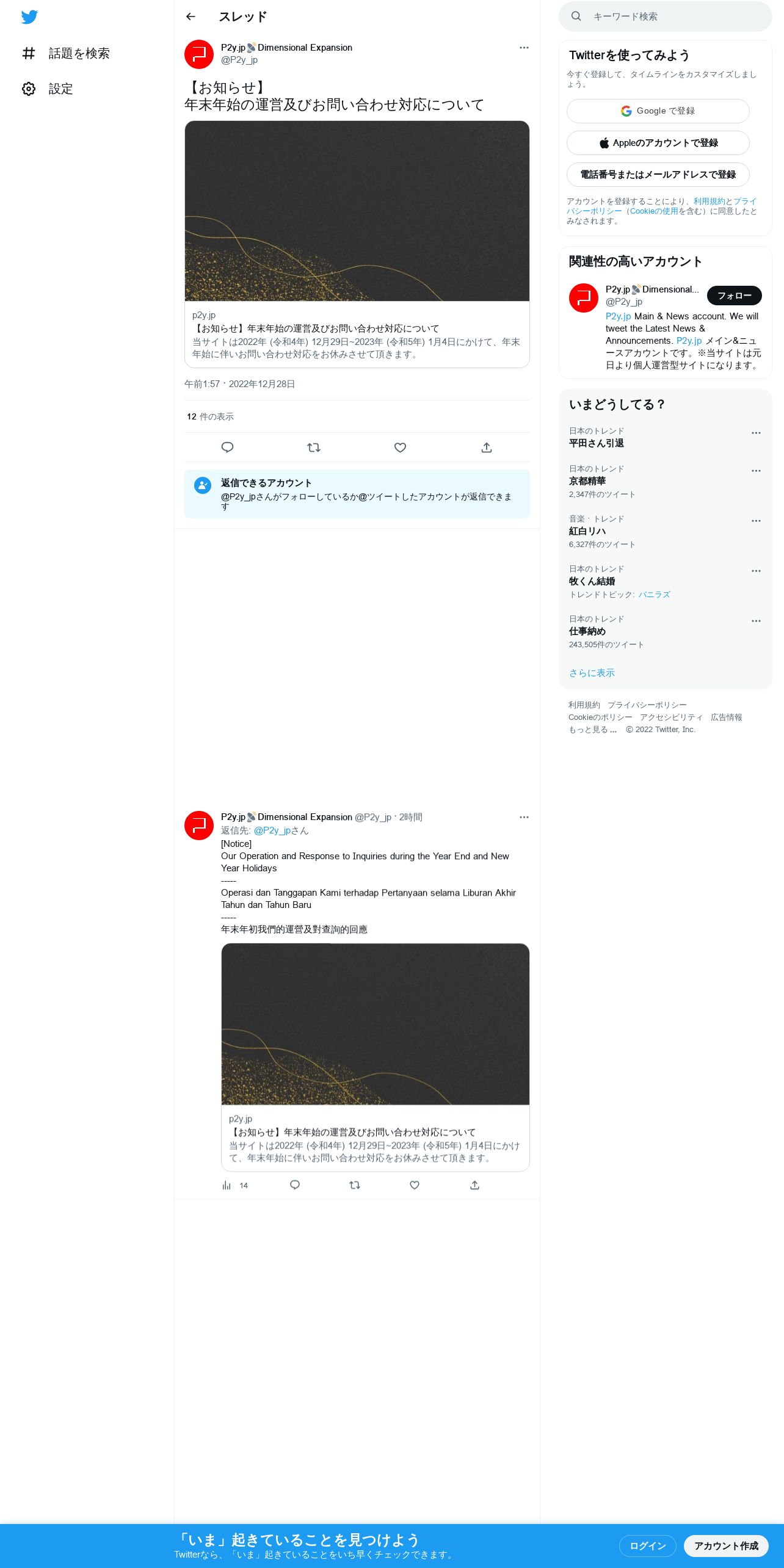 取得元URL: https://twitter.com:443/P2y_jp/status/1607918666724831232