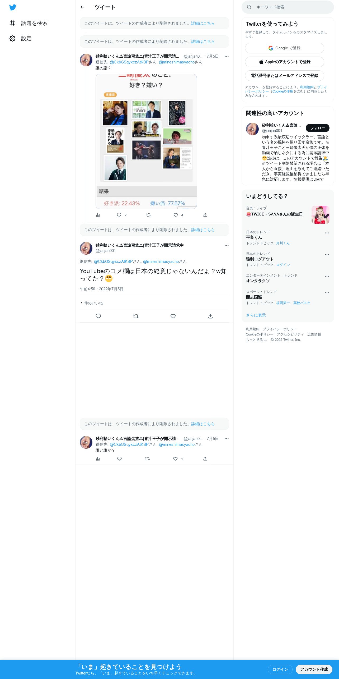 取得元URL: https://twitter.com:443/jarijari001/status/1544183491155611648