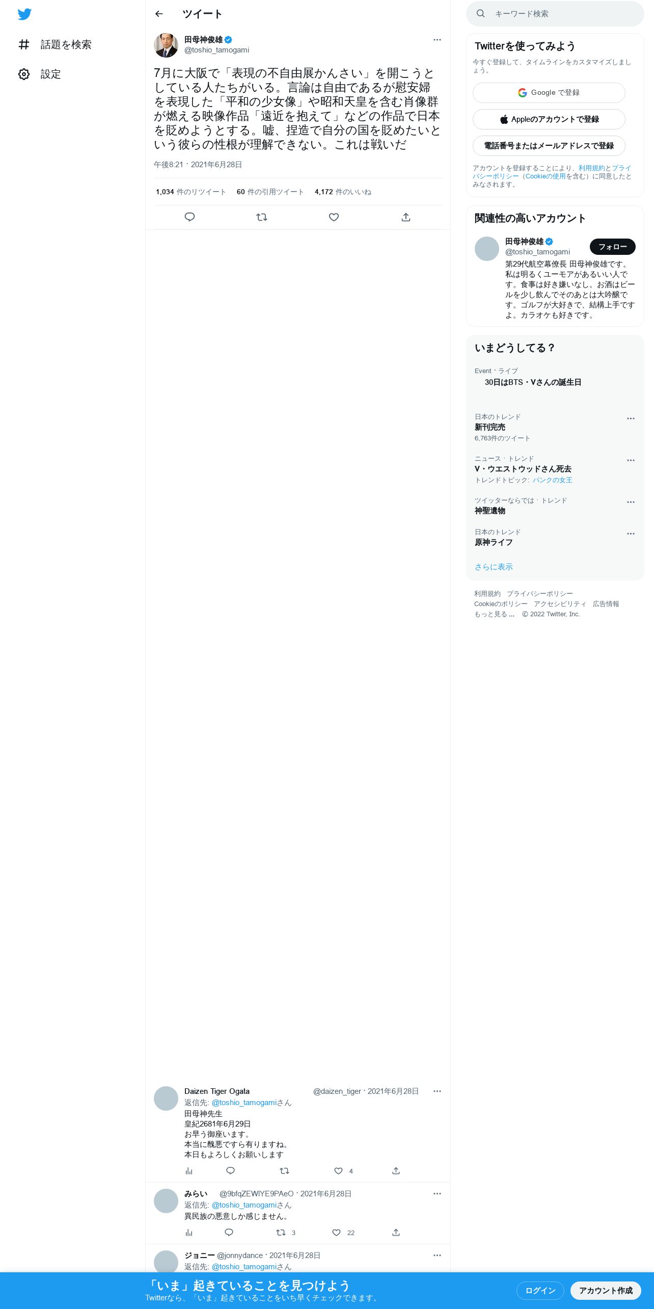 取得元URL: https://twitter.com:443/toshio_tamogami/status/1409607904081039360