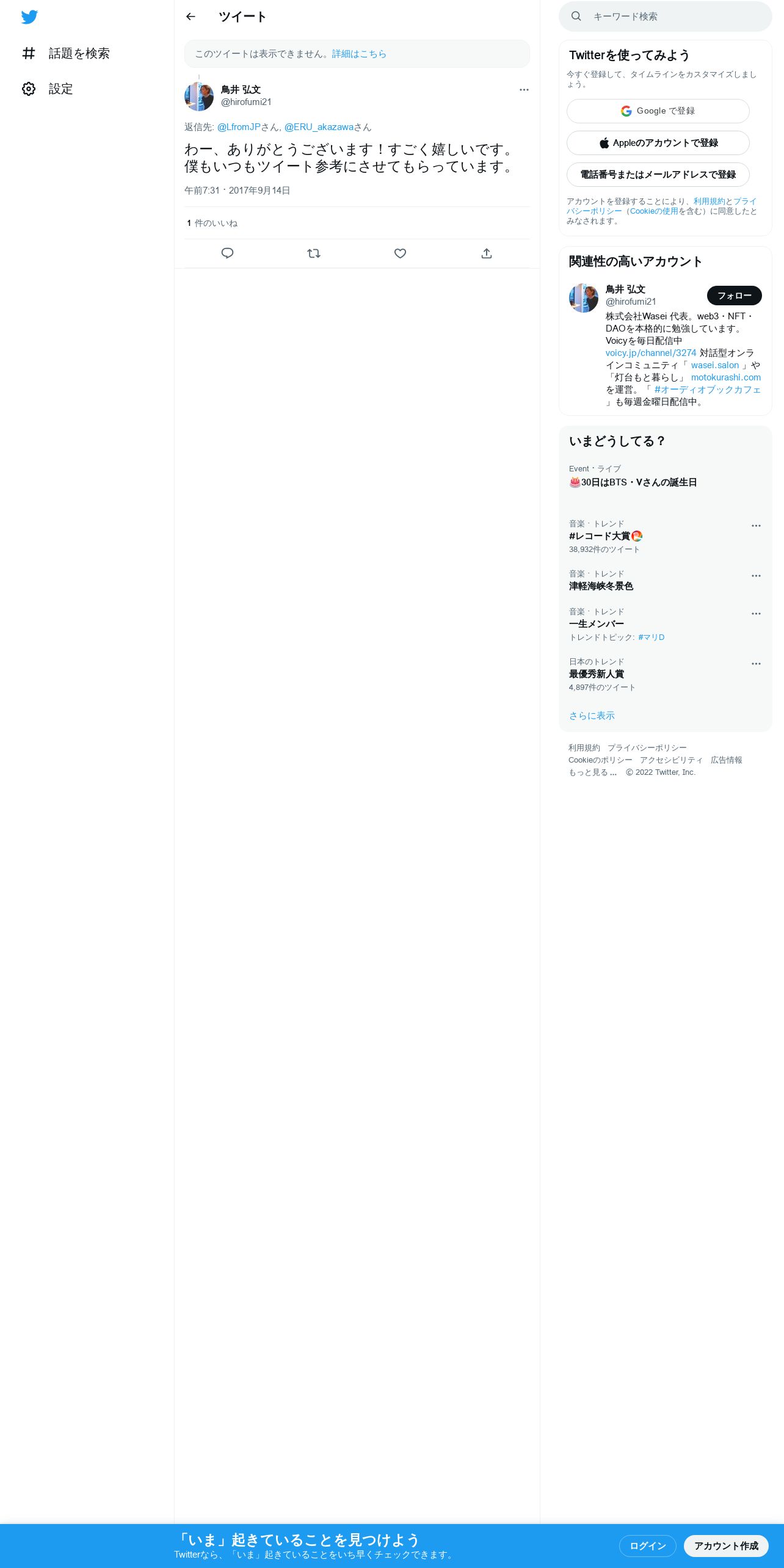 取得元URL: https://twitter.com:443/hirofumi21/status/908231608653590528