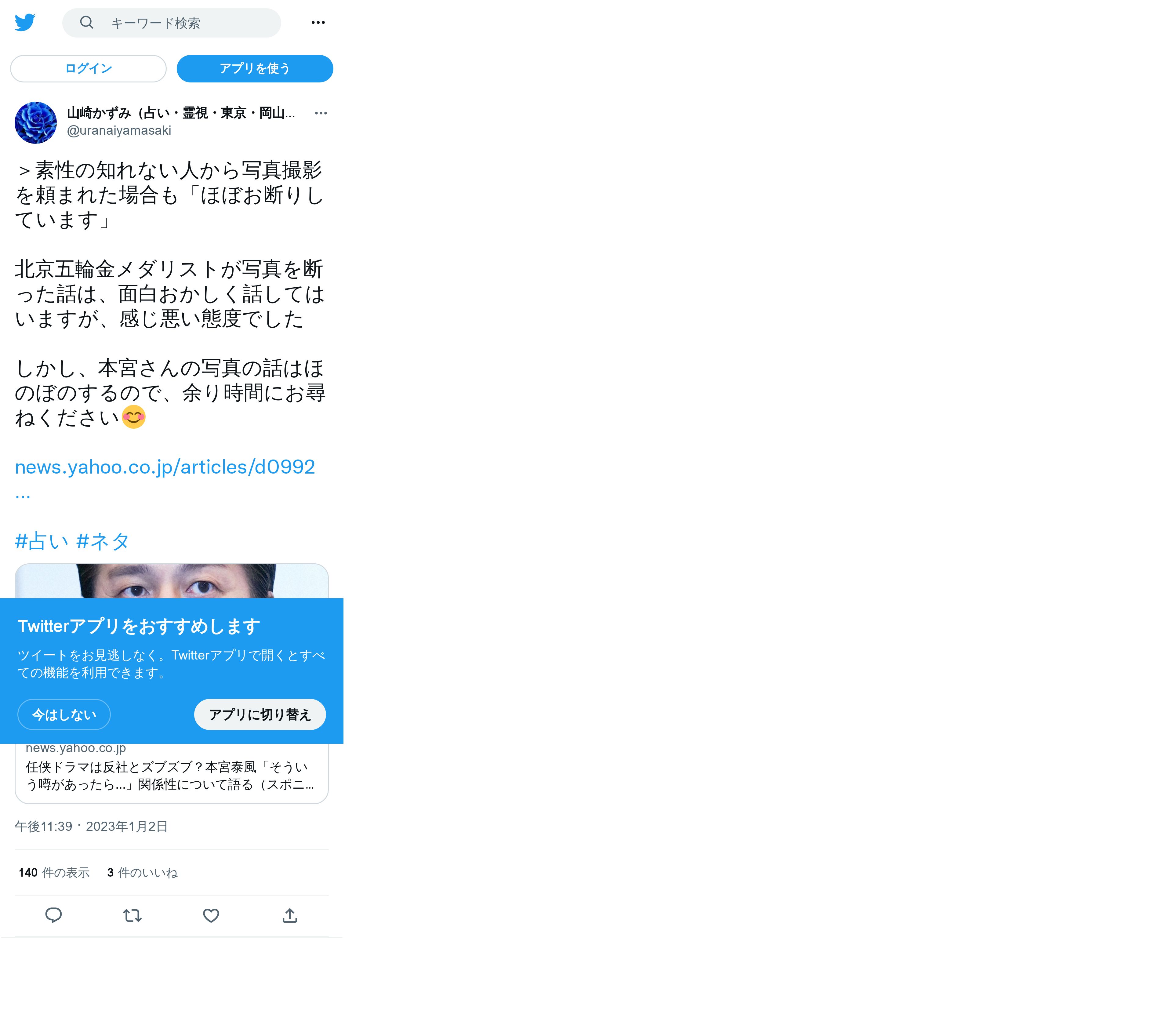 取得元URL: https://twitter.com:443/uranaiyamasaki/status/1610058104502099968