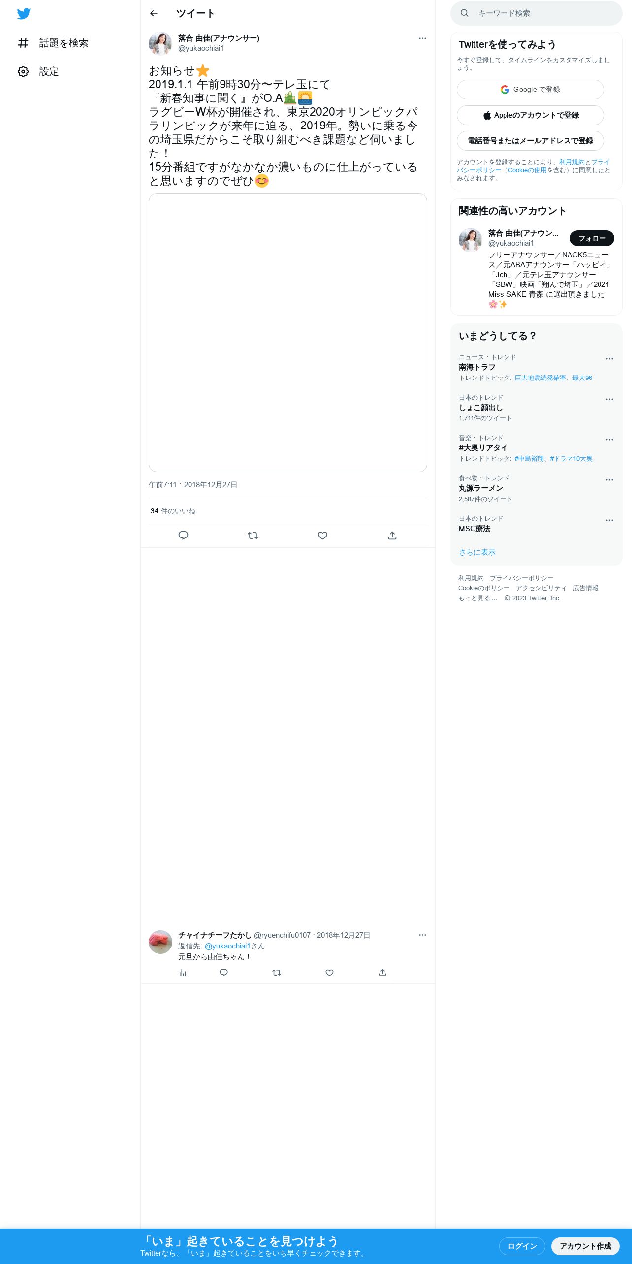 取得元URL: https://twitter.com:443/yukaochiai1/status/1078186528558350337