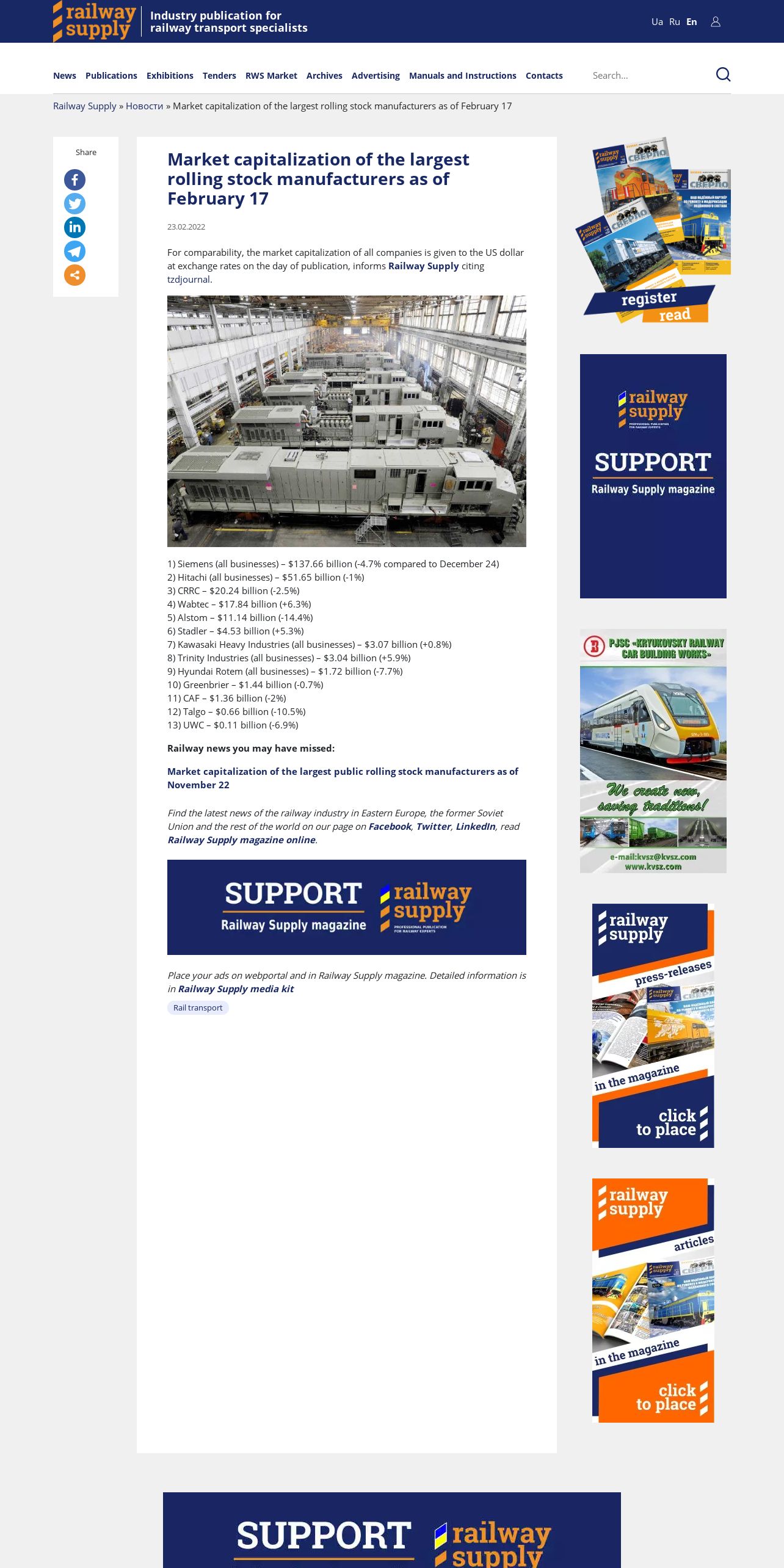 https://www.railway.supply:443/en/market-capitalization-of-the-largest-rolling-stock-manufacturers-as-of-february-17/