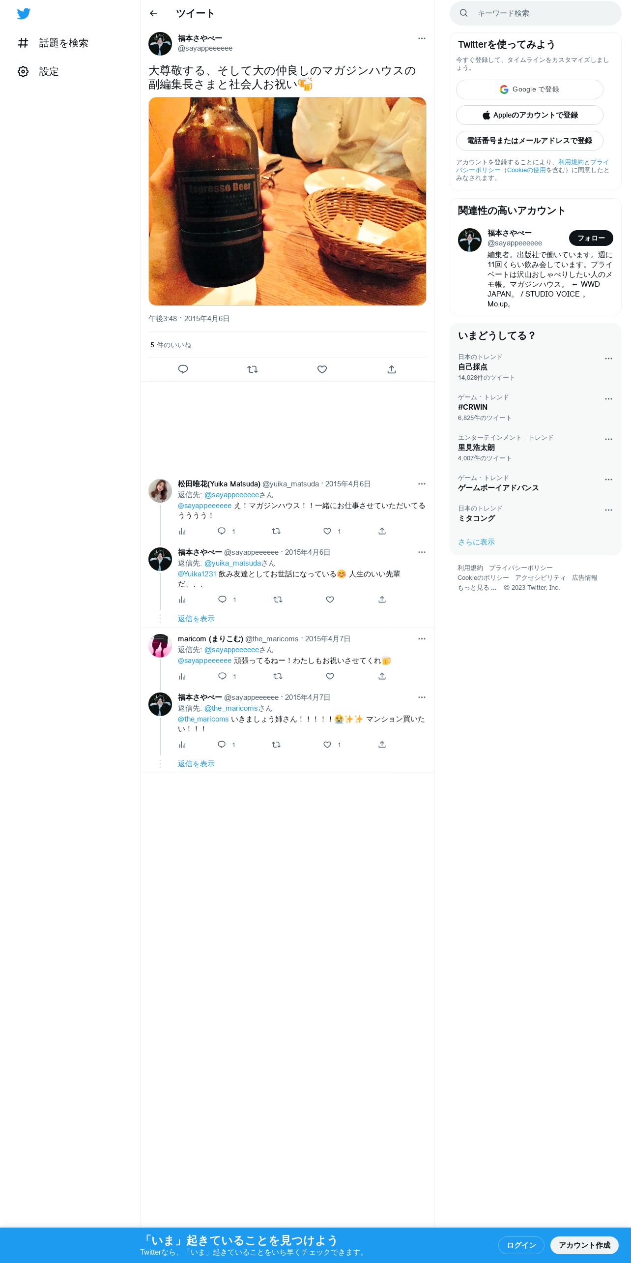 取得元URL: https://twitter.com:443/sayappeeeeee/status/585106900456382464