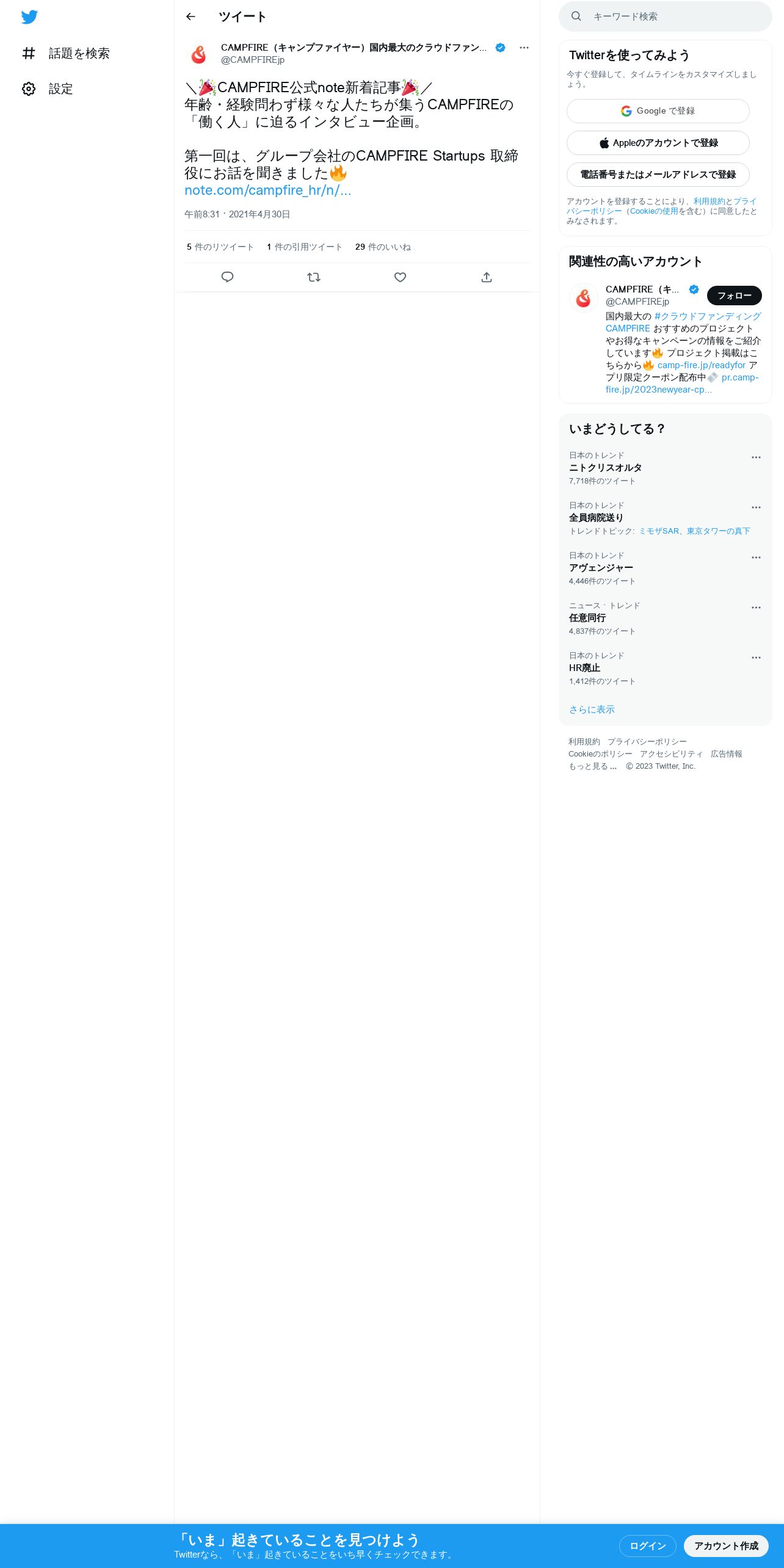 取得元URL: https://twitter.com:443/CAMPFIREjp/status/1388048231620255746
