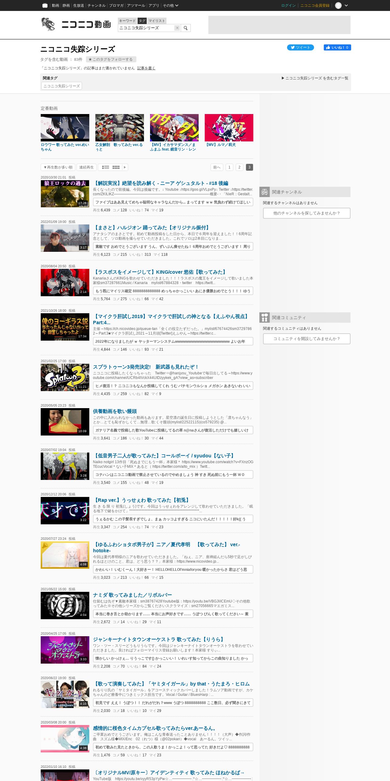 https://www.nicovideo.jp:443/tag/%E3%83%8B%E3%82%B3%E3%83%8B%E3%82%B3%E5%A4%B1%E8%B8%AA%E3%82%B7%E3%83%AA%E3%83%BC%E3%82%BA?page=3&sort=v&order=d