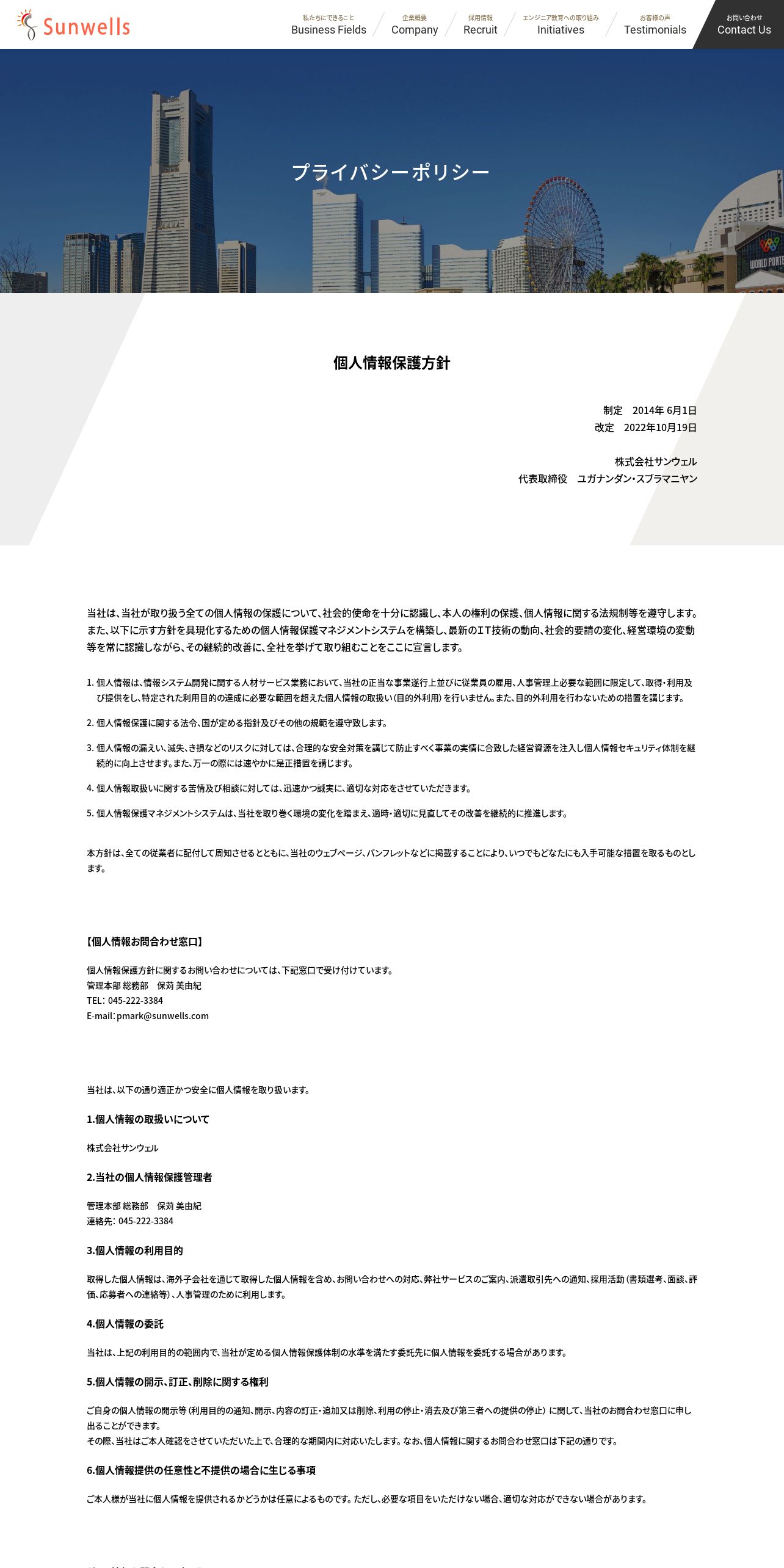 取得元URL: https://sunwells.com:443/company/privacypolicy/