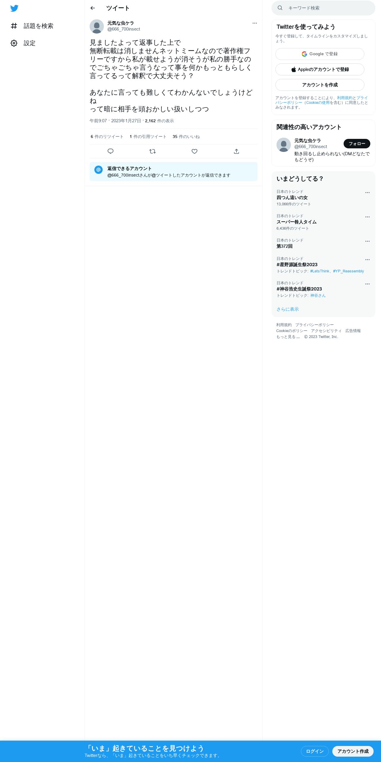 取得元URL: https://twitter.com:443/666_700insect/status/1618898404855398401