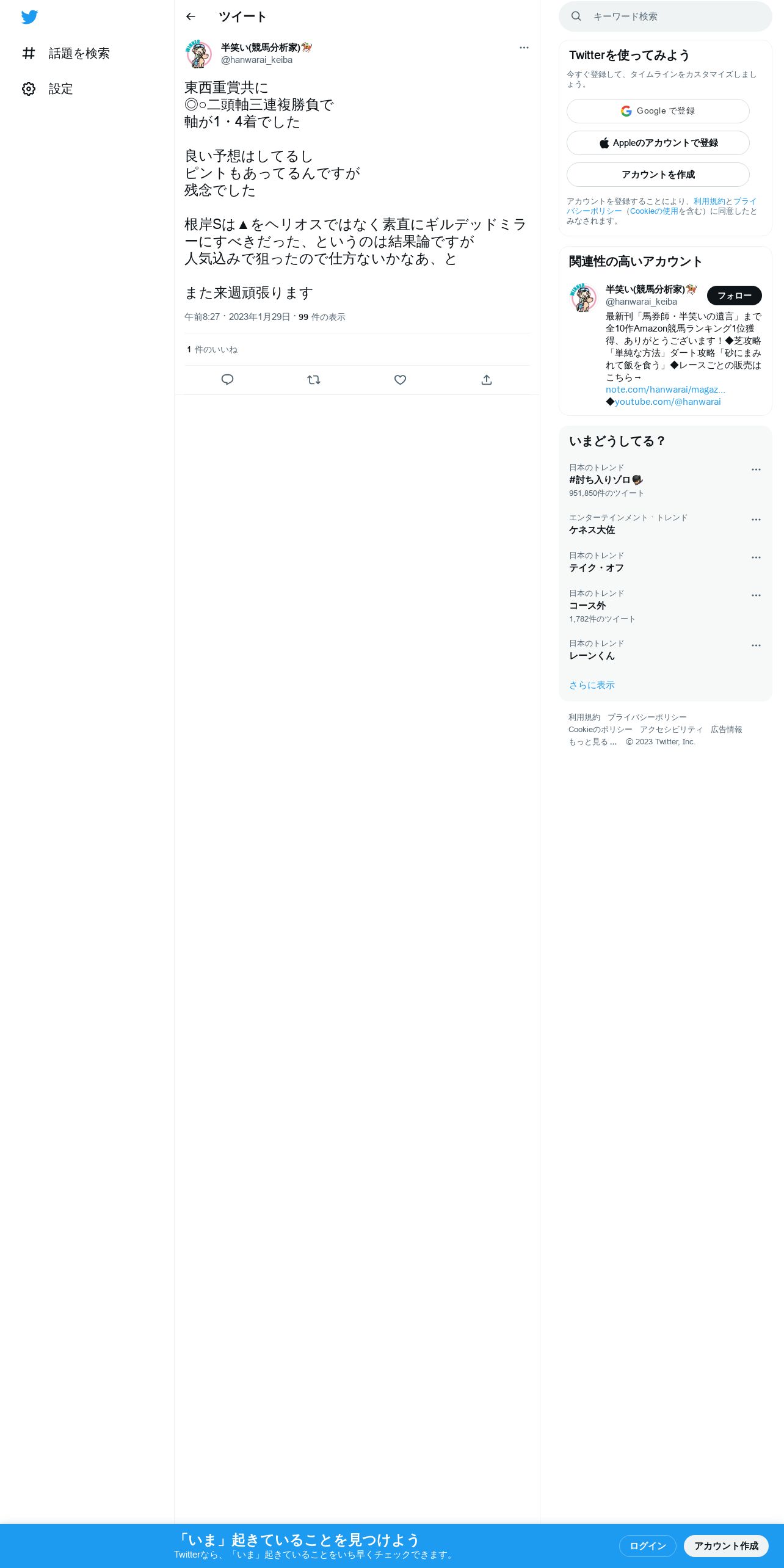 https://twitter.com:443/hanwarai_keiba/status/1619613186730385408