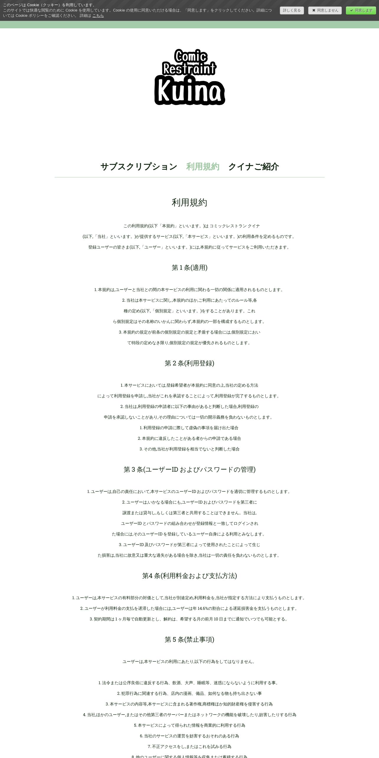 https://comicrestaurantkuina.jimdofree.com:443/%E5%88%A9%E7%94%A8%E8%A6%8F%E7%B4%84/