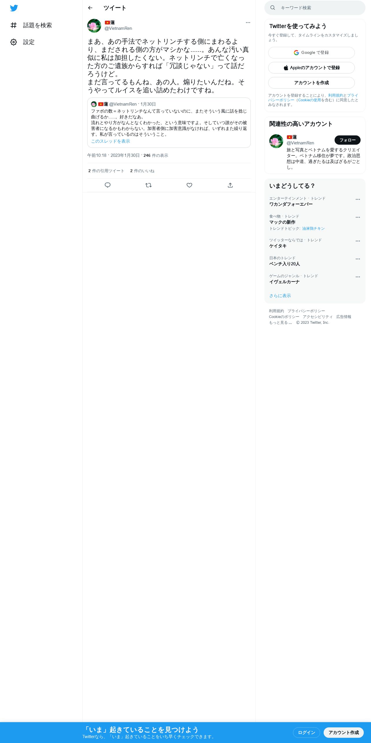 取得元URL: https://twitter.com:443/VietnamRen/status/1620003574297300992