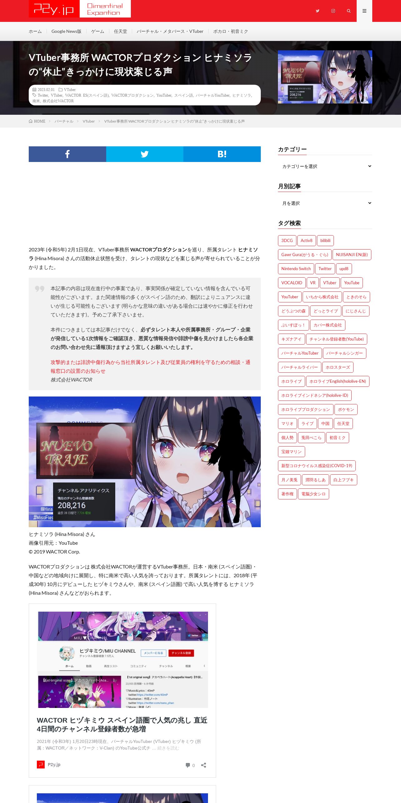 https://p2y.jp:443/vtuber-agency-wactor-production-hina-misora-suspension-without-notice-triggers-concern-about-the-current-state/