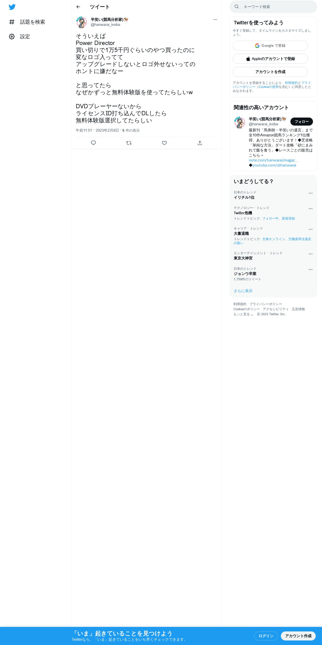 https://twitter.com:443/hanwarai_keiba/status/1623288415759536128
