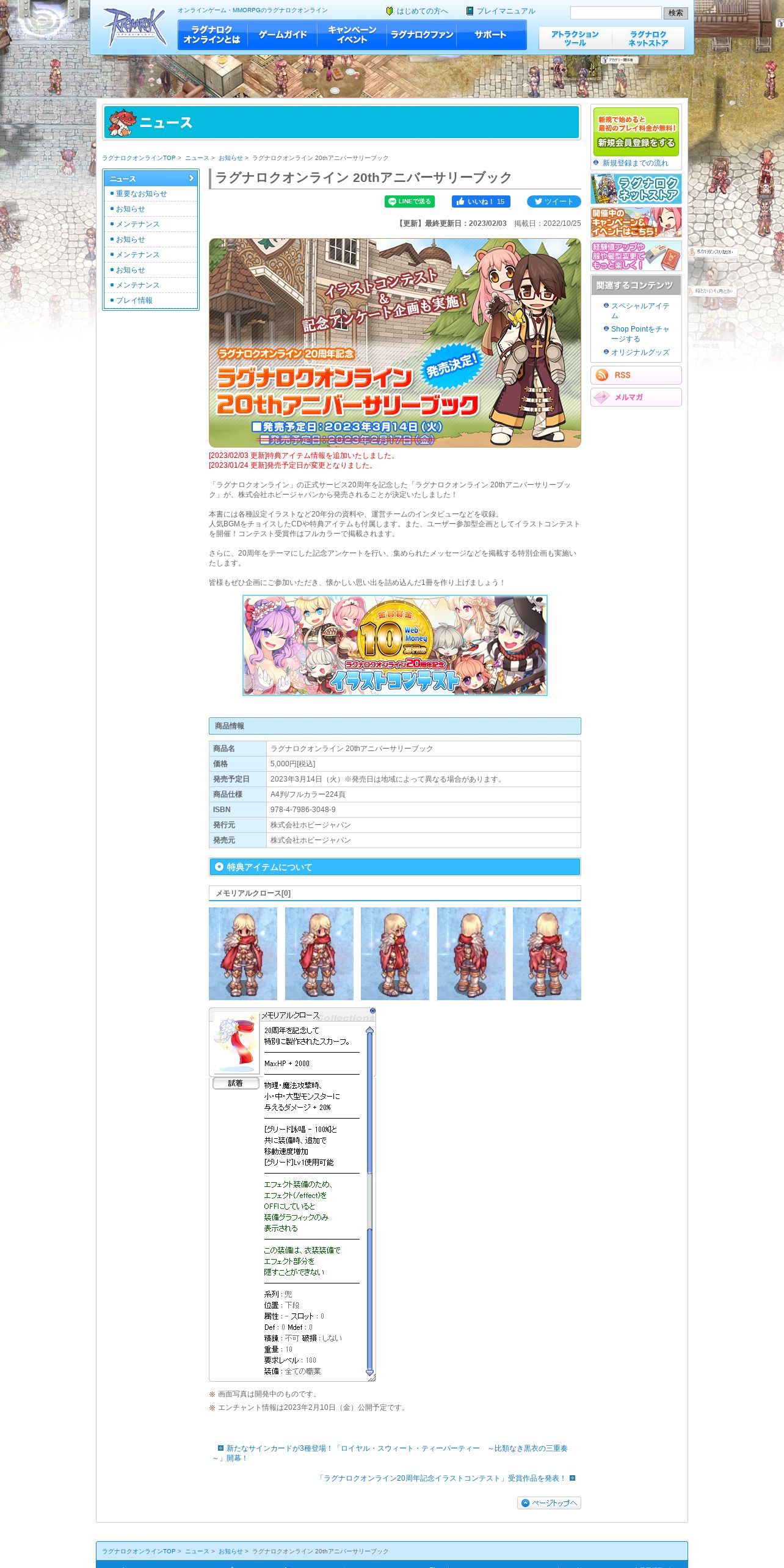 https://ragnarokonline.gungho.jp:443/news/information/20thanniversarymemorialbook.html