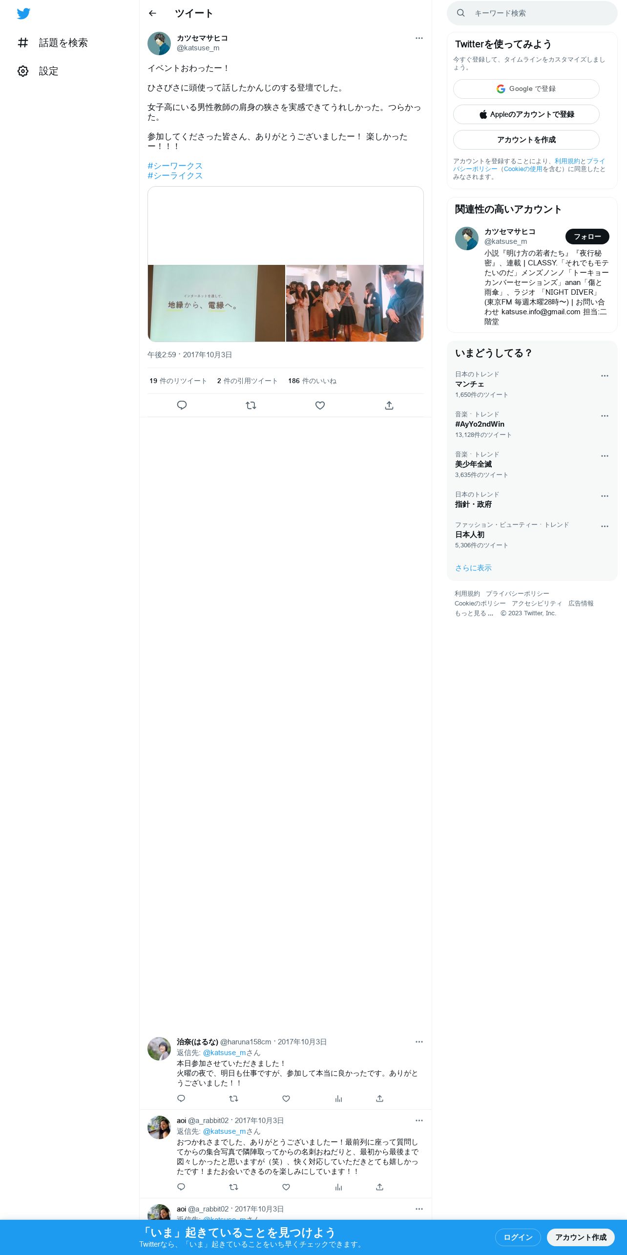 取得元URL: https://twitter.com:443/katsuse_m/status/915229878152134656