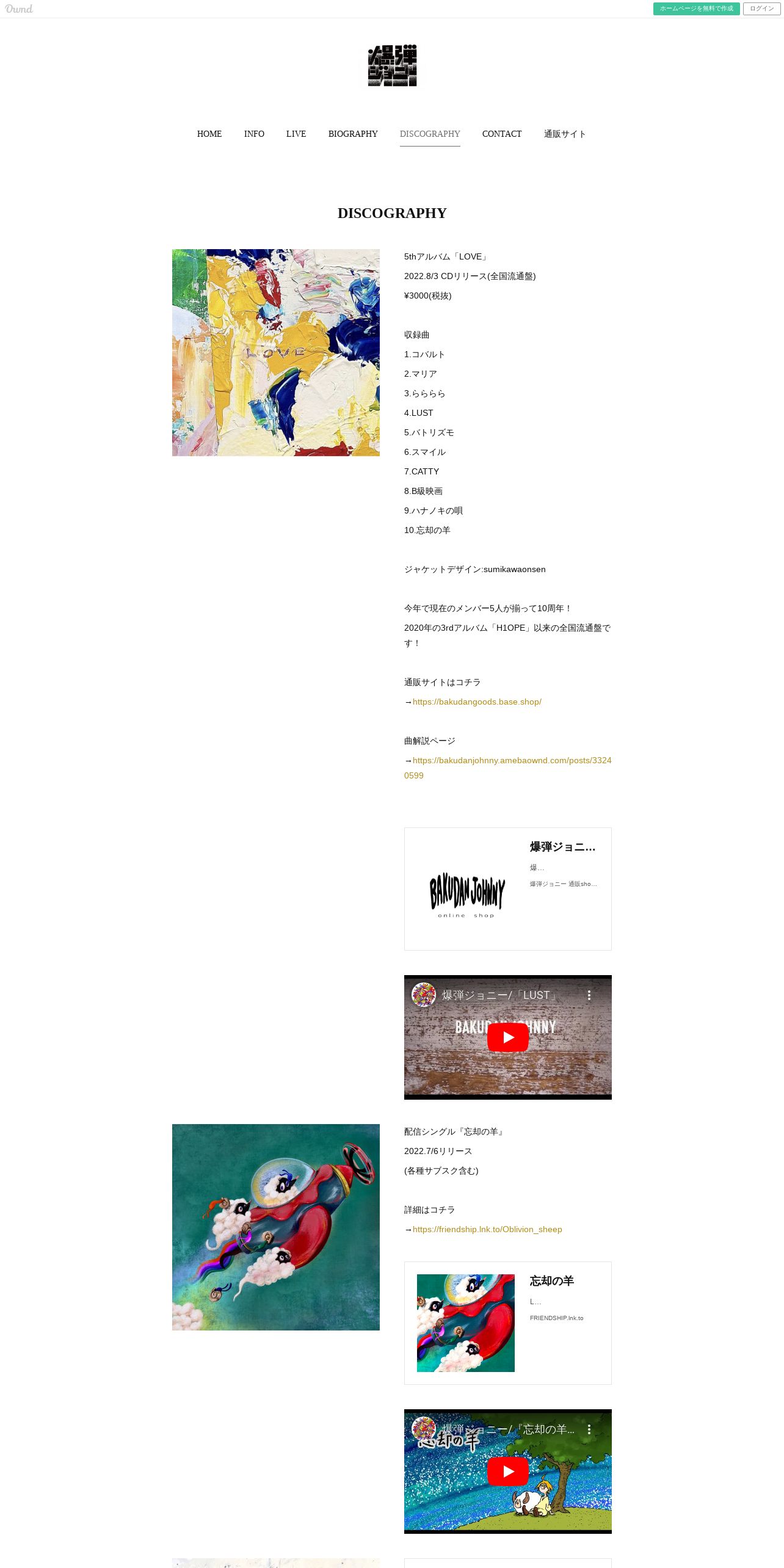 https://bakudanjohnny.amebaownd.com:443/pages/3505170/DISCOGRAPHY
