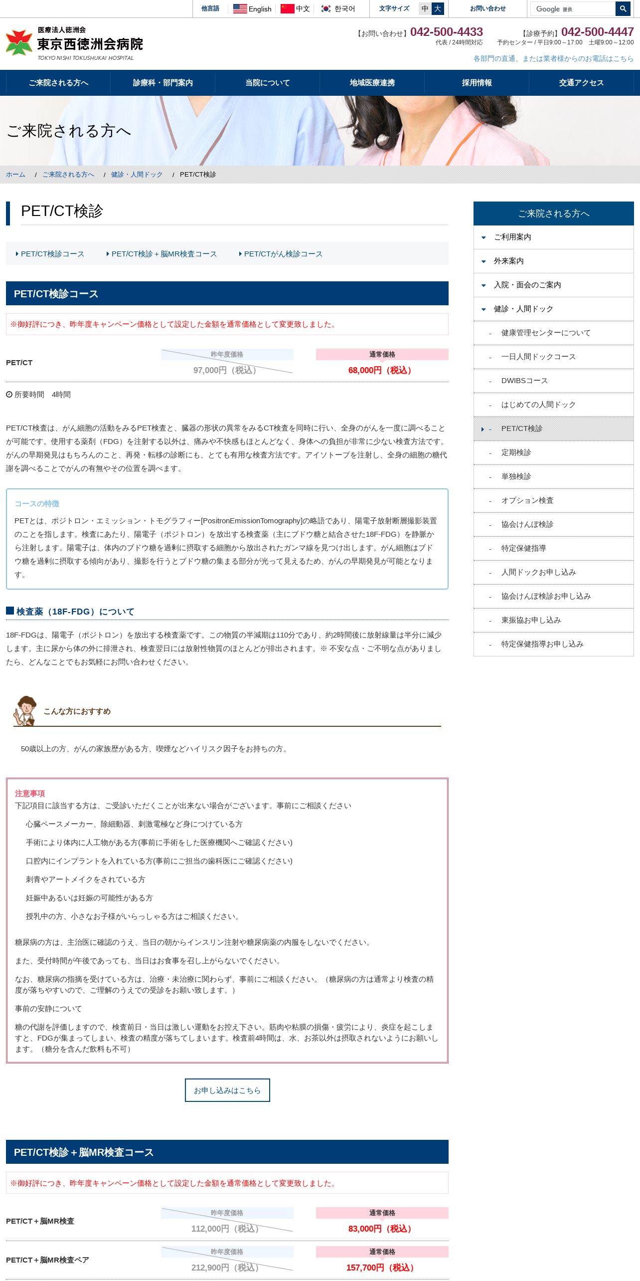 https://www.tokyonishi-hp.or.jp:443/medical_checkup/pet.php