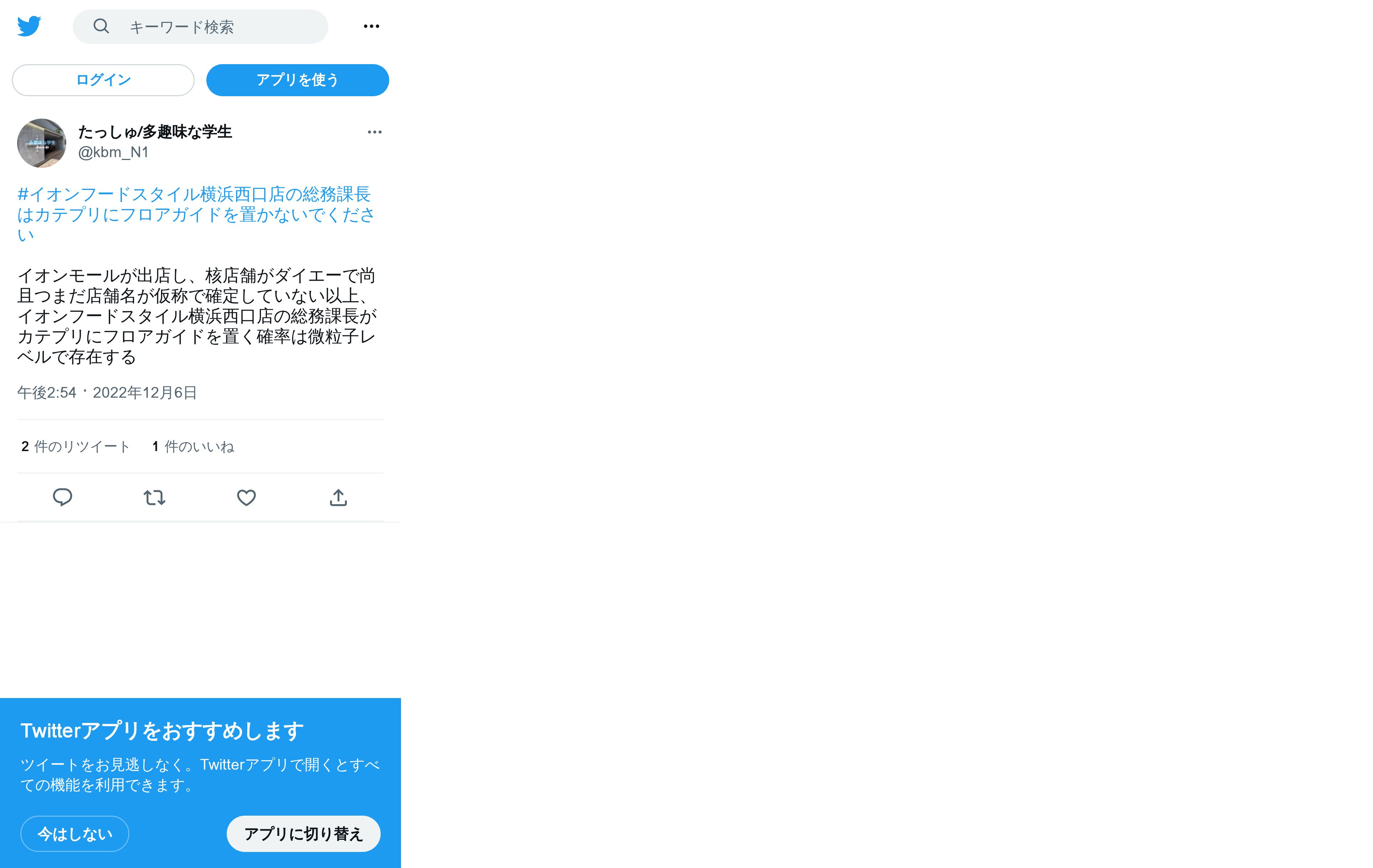 取得元URL: https://mobile.twitter.com:443/kbm_N1/status/1600141527329968129