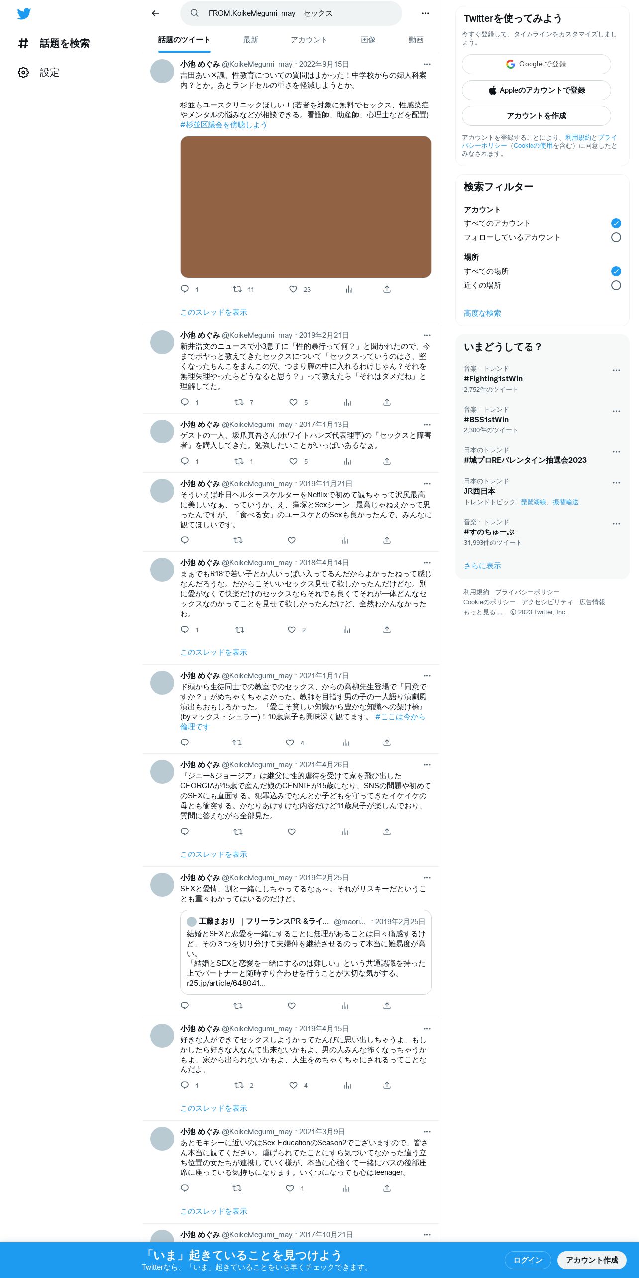 https://twitter.com:443/search?q=FROM%3AKoikeMegumi_may%E3%80%80%E3%82%BB%E3%83%83%E3%82%AF%E3%82%B9&src=recent_search_click