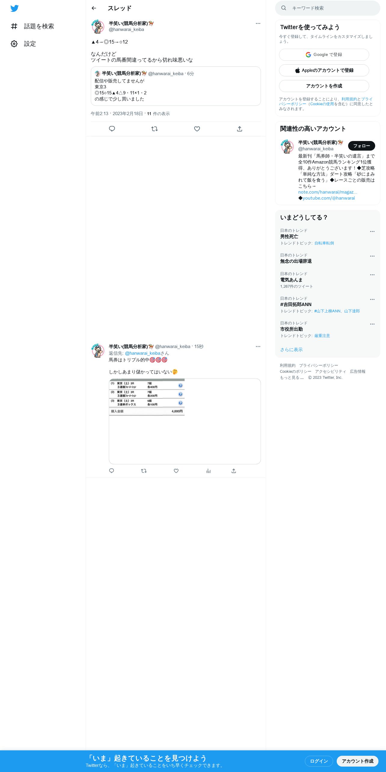 https://twitter.com:443/hanwarai_keiba/status/1626766835361419264