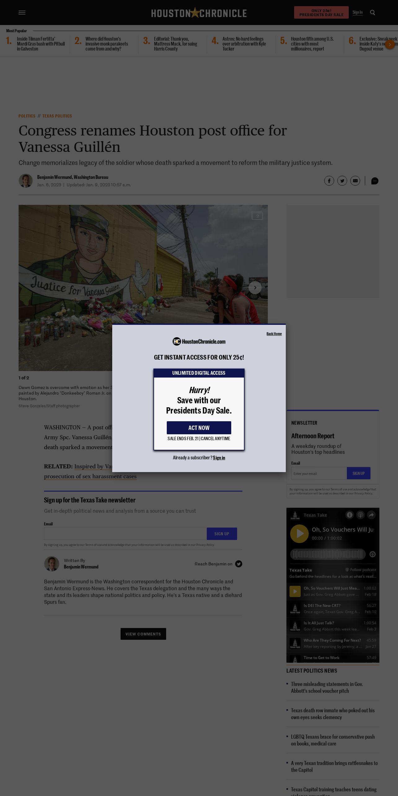 https://www.houstonchronicle.com:443/politics/texas/article/Congress-renames-Houston-post-office-for-Vanessa-17699589.php