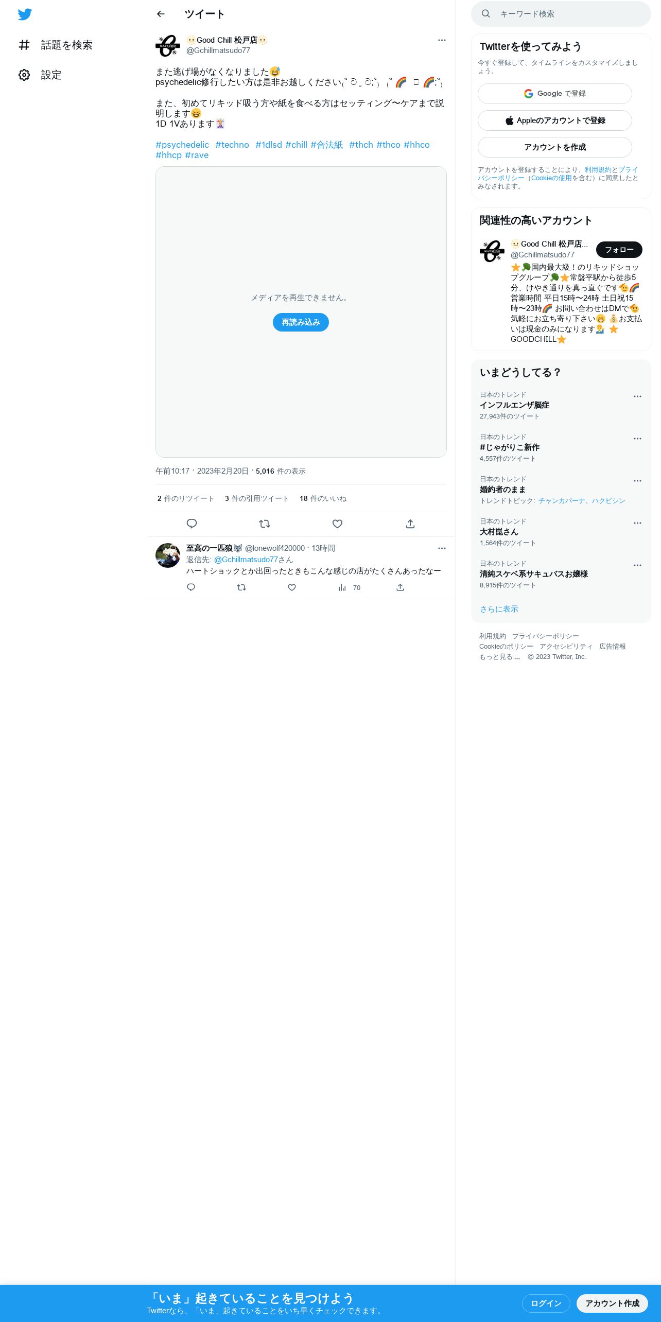 取得元URL: https://twitter.com:443/Gchillmatsudo77/status/1627613455888027649