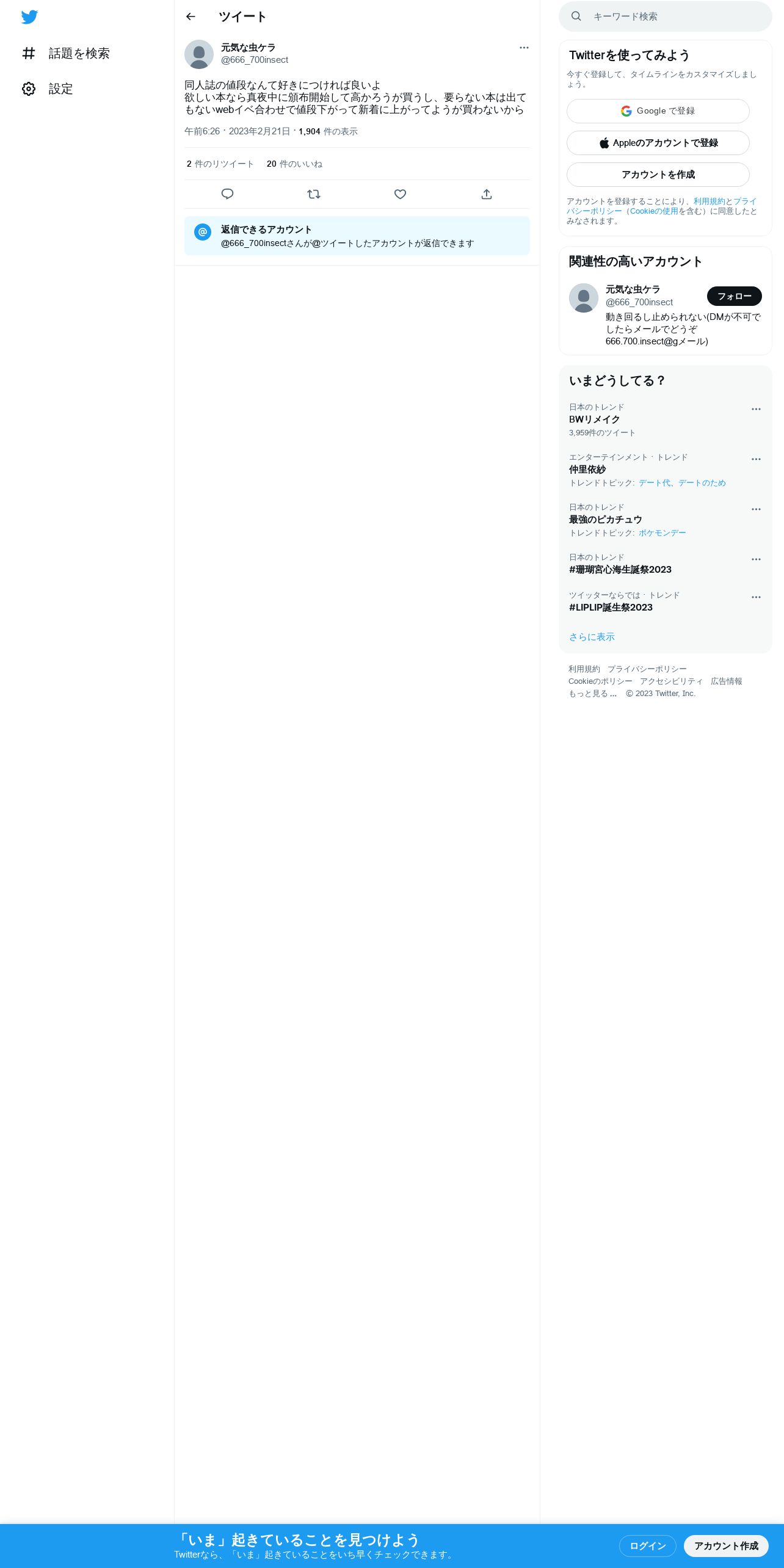 取得元URL: https://twitter.com:443/666_700insect/status/1627917620665262081
